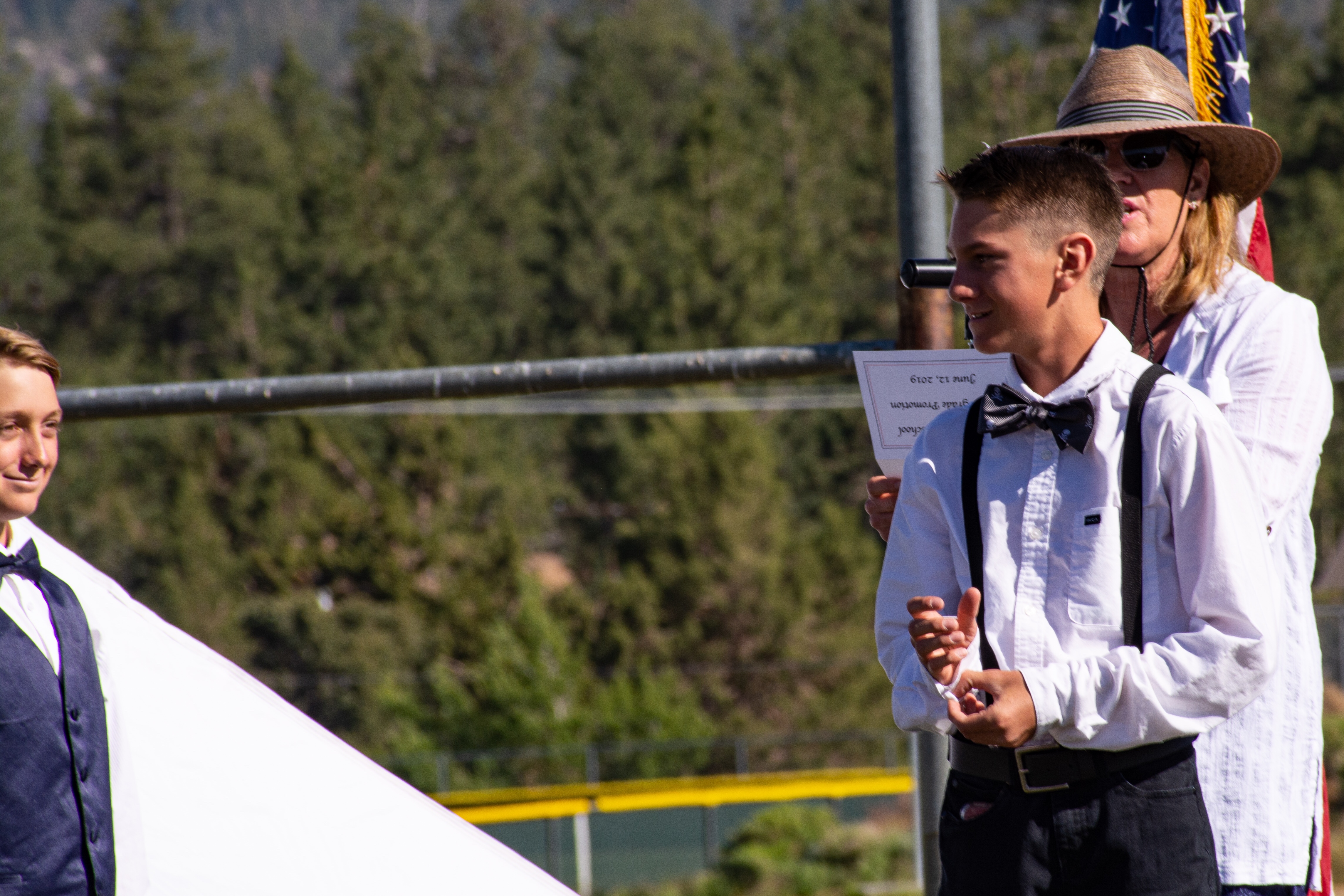 A genuine smile when your buddy gets introduced at the 8th grade continuation.