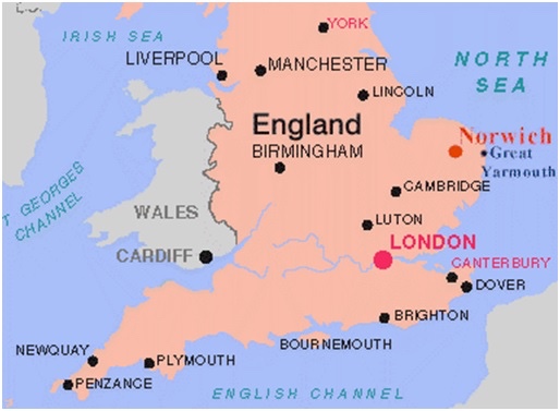 The flag is a bi-color, gold and black field with a white ‘bend’ bearing 9 black ermine spots in alternating pairs of singles and doubles. (Yes Ermine – the weasel family animal known as a stoat. The fur of the stoat is used as trimming for ceremonial robes of royalty.) It is based on the banner of the first Earl of Norfolk from the 12th century.