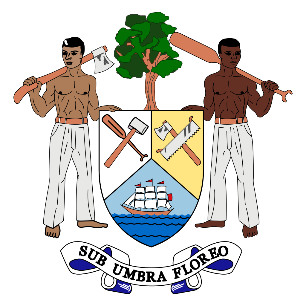 The current flag was adopted upon independence in 1981. It is a blue field with the coat of arms in a white circle in the middle. The red stripes were added in 1981 upon their independence. It is the only flag in the world that has humans as the major design element. And, with 12 colors being used, it is the most colorful flag in the world. The coat of arms has changed over time.