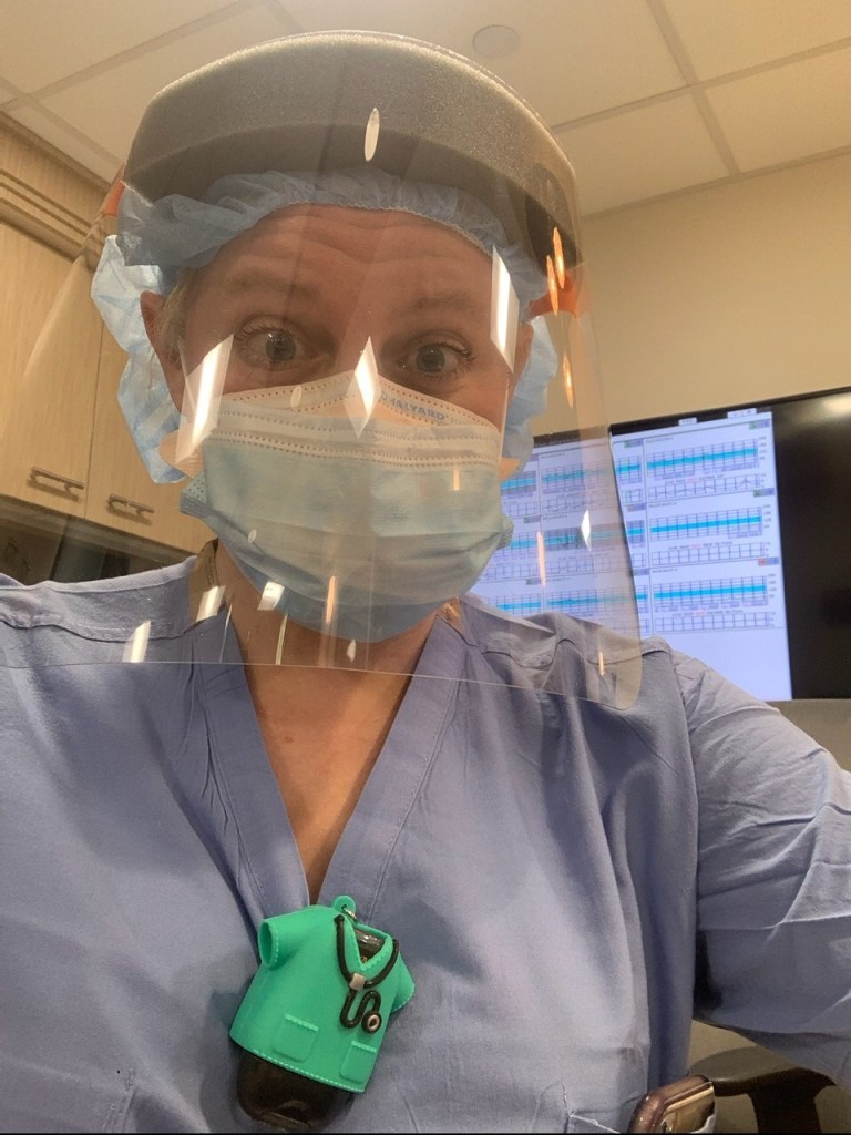 I have the flag to honor and let everyone know how proud we are of our own frontline hero: Our Nicole. She is a traveling nurse and has been in the battle against Covid-19.