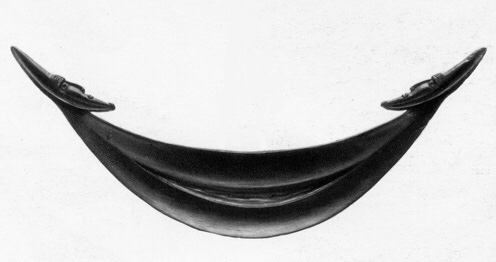 The flag is a white field with a red (for power) reimiro in the center. The reimiro is a pectoral ornament worn by the people of the island. On each edge of the reimiro is an anthropomorphic symbol of the chiefs or nobels from their ancestors.