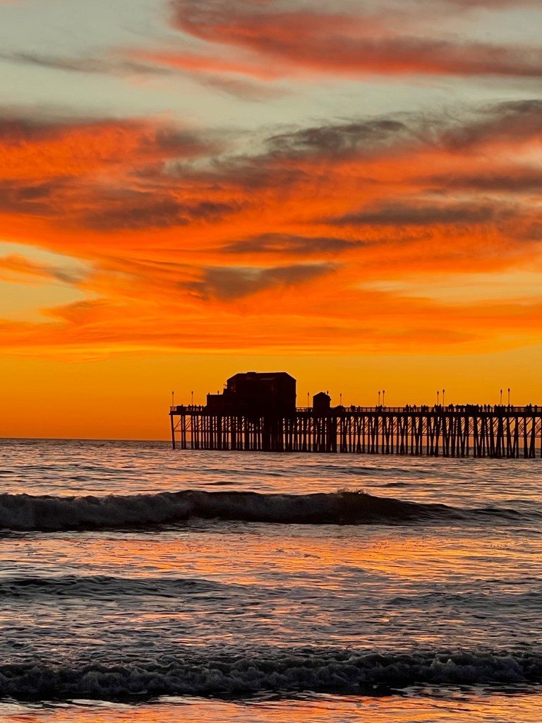 Ok…fine, she talked me into it…People would tell us about places, ‘you just have to go see’. This reminds me of a scene from a Pee Wee Herman movie. It is at The Carlsbad Museum of Miniature Industry. Tom the handyman insisted we needed to experience it. Each day in the late afternoon we would be watching the sky – if there were the correct types of clouds we knew the sunset would be fantastic. Another place we heard about was The Bolsa Chica Ecological Reserve. We took a little trip north to Huntington Beach to see this reserve that had been set aside by the city. Directly across the highway at the Huntington Beach State Park, you could see the oil rigs out in the ocean. It was the place of a horrendous oil spill last year. Very sad consequences for beaches for miles north and south. Regardless of what we did during the day, each evening involved walking down to the beach.