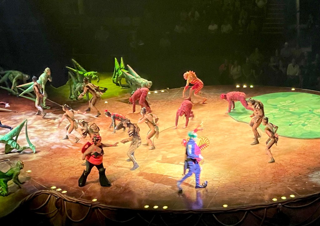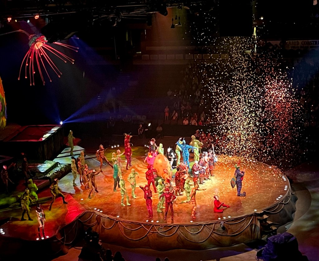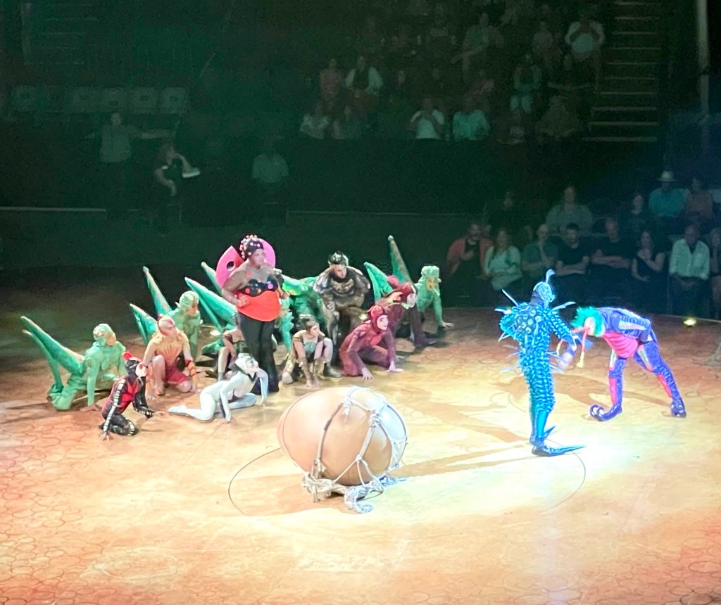 When you first sit down in the Broadmoor World Arena in Colorado Springs you wonder what the large egg like thing will transform into. Denise, our friend Marilyn with her granddaughter along with the Vet himself. Soon strange creatures begin crawling out of holes and they dance, fly and do all kinds of amazing acrobatics. The action never stops. You have to keep watching as creatures arrive constantly. You never know what to expect.