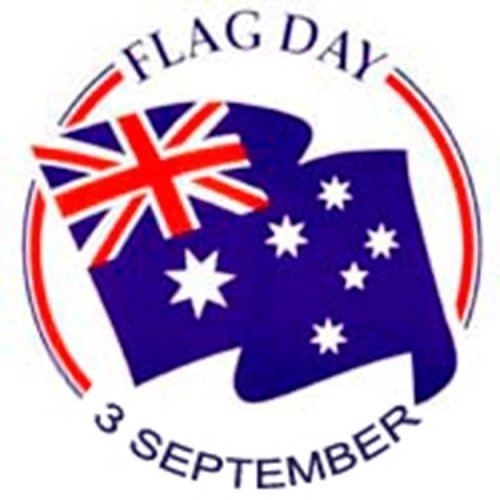 The national flag of Australia, flying on Flag day in Australia. It consists of a blue field with what we call the Union Jack in the canton (the upper left, hoist side) this is similar to the British Maritime Ensign. The field is, the proper term is ‘defaced’, with the commonwealth star.