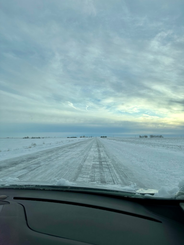 I 70 East was closed not far out of Denver so we asked Google if there was an alternative route East. We were dumber than a box of rocks to listen to Google. Two lane…not blacktops, snow packed highways took us through middle of ‘Nowheres’ Colorado.
