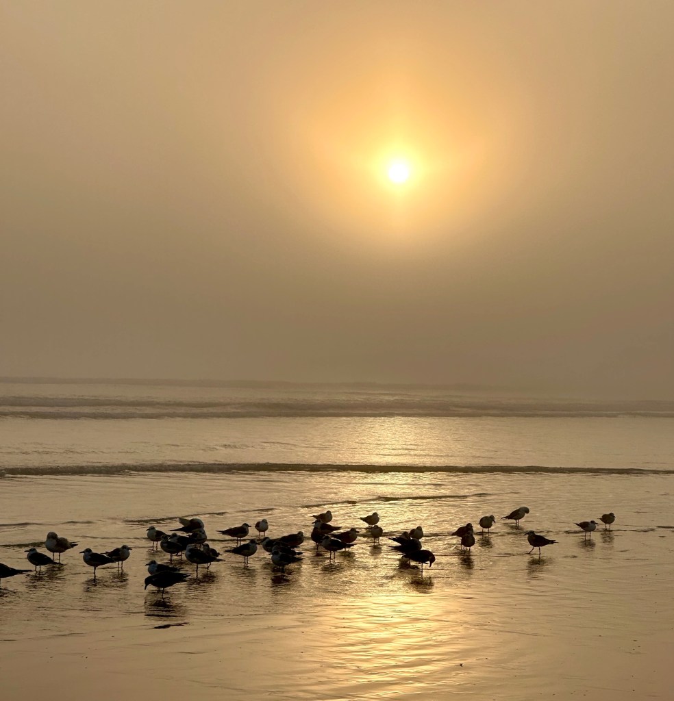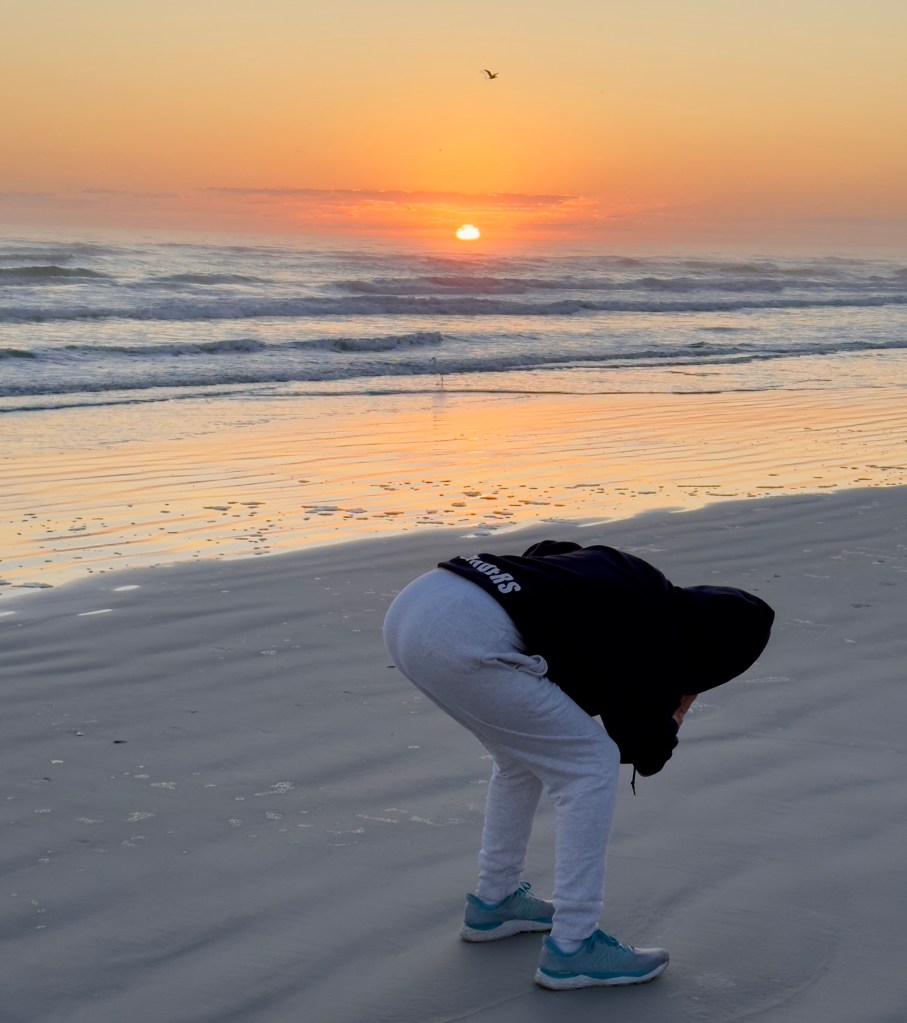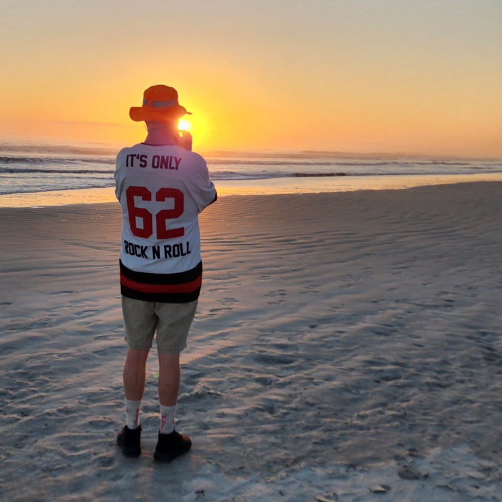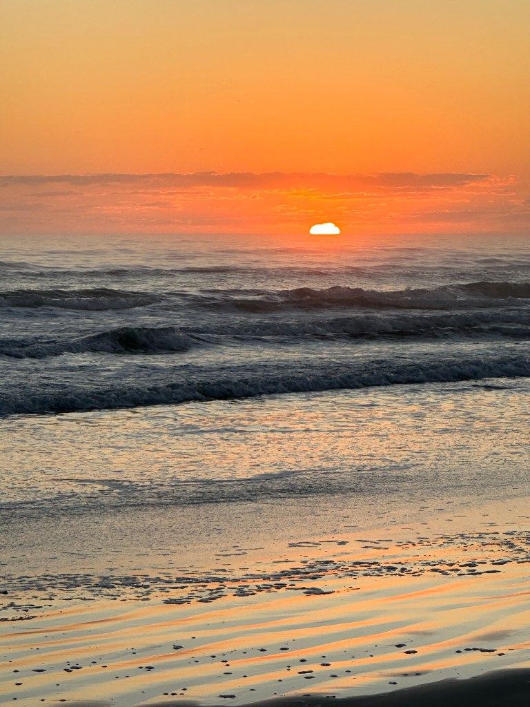 Last year we wintered in Oceanside California. Every day we went down to the beach to see the sunset. Here on the east coast we looked forward to sunrises. The first morning in New Smyrna Beach we rushed down to the boardwalk at the end of our block to see our first sunrise. These are not blurry photos…it was completely socked in with heavy fog…oh well. We just drove 1860 miles and we would not be denied our first sunrise…dang it! The sun finally popped through the fog and our initial sunrise was in the books. Gull coffee klatch January 2, 2023. In addition to local coffee places we scout out local ice cream businesses. We met a couple who had just moved from Georgia. Jim & Jen bought a local high quality ice cream joint and now had a new home and a new business. It is all homemade with top quality ingredients. It was mighty tasty. And you can always tell a high quality place when you see fantastic art on the walls. At 7:18 the next morning we were on the fogless beach for our first clear sunrise. The true nature photographer must have the correct angle. Other photographers just stand there. Gary still holds the theory, ‘it’s not the destination – it is the journey’. Always on the lookout for the different angle. January 3rd was our first clear look at some of the damage Hurricane Ian had done to New Smyrna Beach. Ian was a category 4 hurricane that hit New Smyrna on September 28th. Three plus months later many parts of Florida are still cleaning up. Our research staff, Denise, looked for the best places to see the sunset in New Smyrna. We drove the 15 minutes to Smyrna Dunes Park to see the sun go down over the Indian River.
