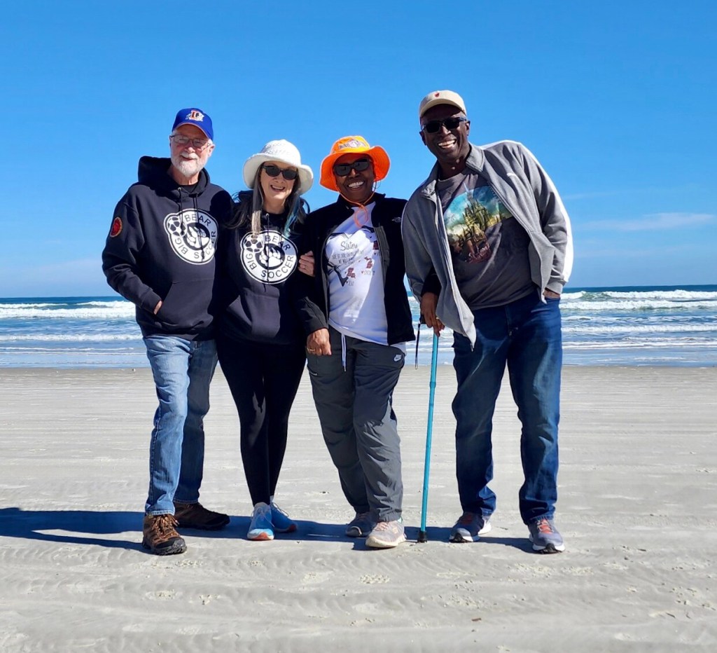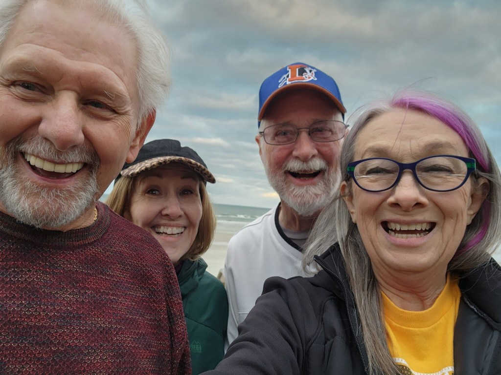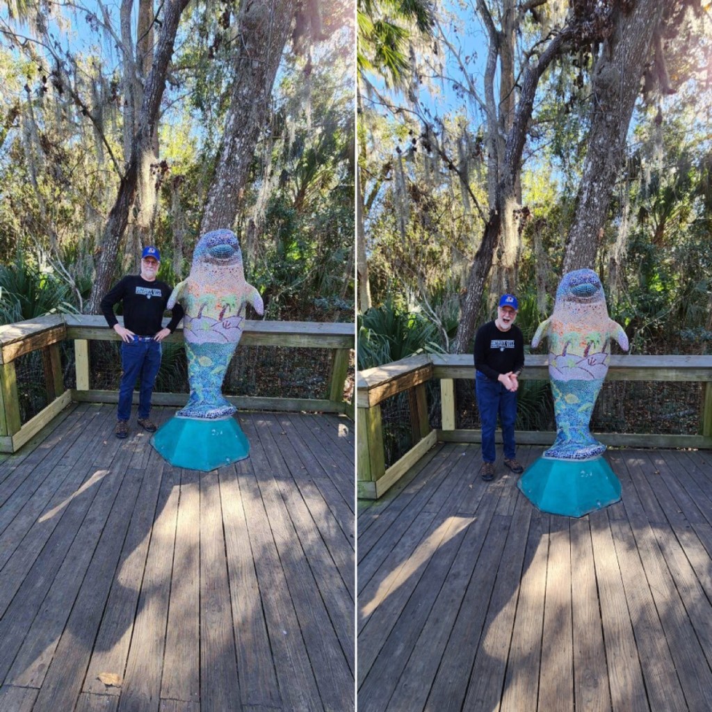 Central Florida is a Mecca for tourists with kingdoms built to rodents and film studios. We go in search of the ‘real’ Florida so we end up in many state parks. Close to NSB (New Smyrna Beach) is Blue Springs State Park, winter home to hundreds of strange creatures. Yes indeed, the mysterious Manatee, aka ‘Sea Cow’. We drove the 45 minutes to Blue Springs State Park. It has been a place where Manatees come during the winter. The water in the park is warm so it attracts hundreds of ‘sea cows’. “Manatees (familyTrichechidae, genusTrichechus) are large, fully aquatic, mostly herbivorousmarine mammals sometimes known as sea cows. There are three accepted living species of Trichechidae, representing three of the four living species in the order Sirenia: the Amazonian manatee (Trichechus inunguis), the West Indian manatee(Trichechus manatus), and the West African manatee (Trichechus senegalensis). They measure up to 4.0 metres (13 ft 1 in) long, weigh as much as 590 kilograms (1,300 lb), and have paddle-like tails.”The Manatee in Florida is the West Indian Manatee. It’s range is denoted in green. “Manatees weigh 400 to 550 kg (880 to 1,210 lb), and average 2.8 to 3.0 m (9 ft 2 in to 9 ft 10 in) in length, sometimes growing to 4.6 m (15 ft 1 in) and 1,775 kg (3,913 lb) and females tend to be larger and heavier than males. At birth, baby manatees weigh about 30 kg (66 lb) each. The female manatee has two teats, one under each flipper, a characteristic that was used to make early links between the manatee and elephants.” (The photo is an injured adolescent Manatee that is tagged so the park rangers can monitor his movements and recovery.)It is fun to be partners with someone who believes the old adage: ‘strangers are friends you haven’t met yet’. One morning Denise made a fancy breakfast for ten new friends. From a hiking trail at Mt Falcon in Colorado to the beach in Florida our new friends Daniel and Lexi. Make new friends but keep the old, one is silver and the other gold. Our old neighbors in Winter Park Florida. 40 years ago our kids were best buddies. New friends from Atlanta who we met walking on the beach one morning. Thirty three years ago we met our old friends Viv and Jim Elliott. When we want to show visiting friends the sunset we take them over to New Smyrna Dunes Park. Jim and I walked out on the fishing dock and saw a nice ending of the day. As soon as we left the park we looked up in the sky and saw the Space X launch of a GPS satellite on a,rocket launched from NASA Kennedy space center. With the sunset the vapor trail from the rocket turned orange. It was a great way to impress visitors. Pretty cool way to end a day. We love our times of having adventures.