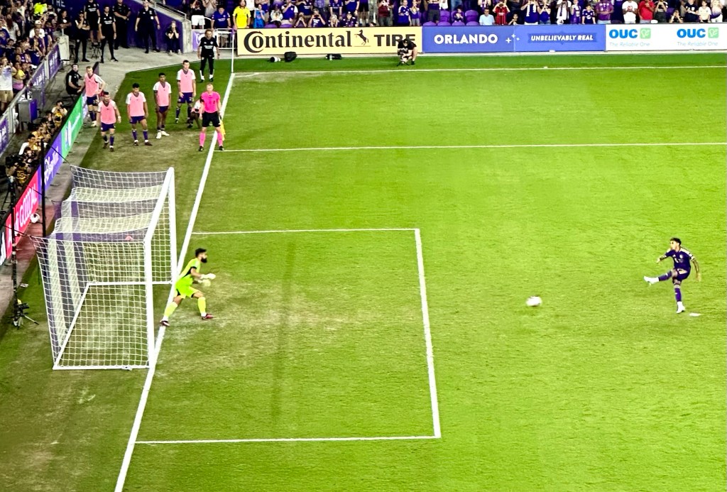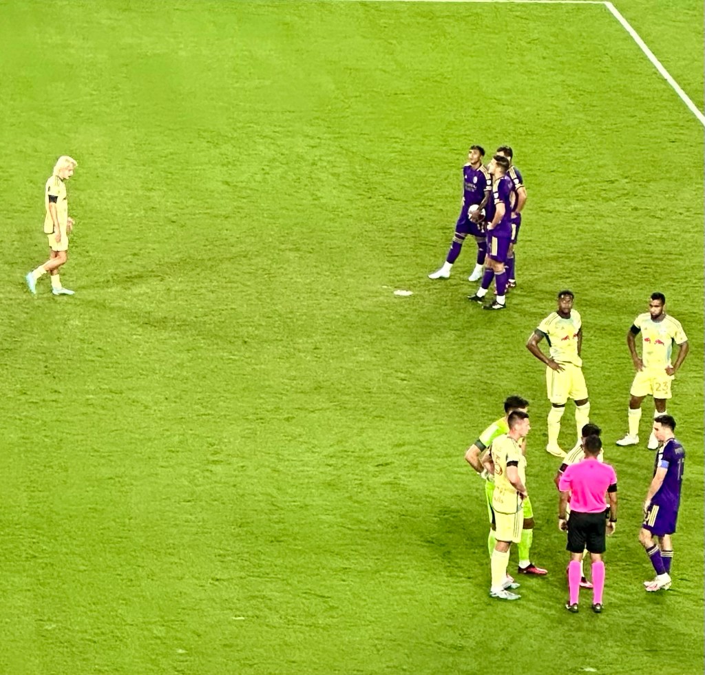 Captain Mauricio Pereyra confers with the referee after New York was called for a handball in the penalty area in the 56th minute of play.