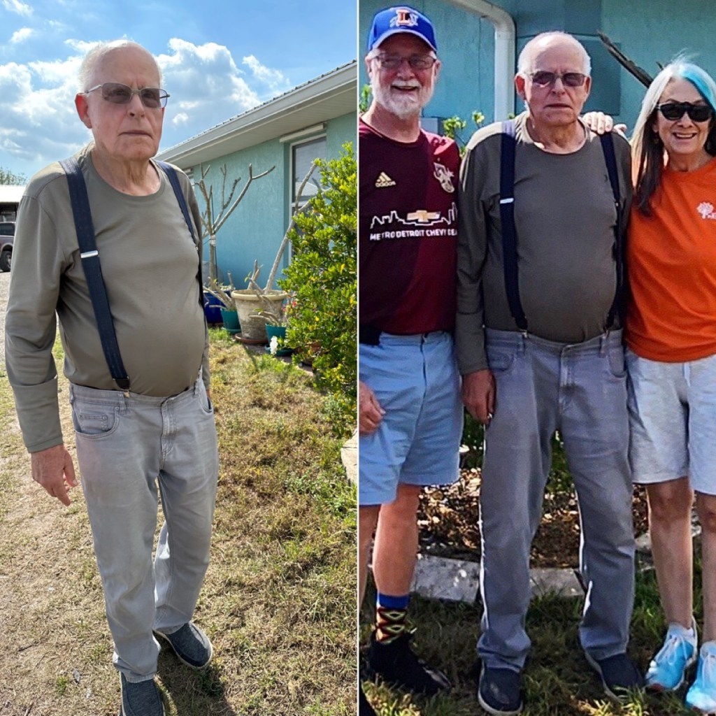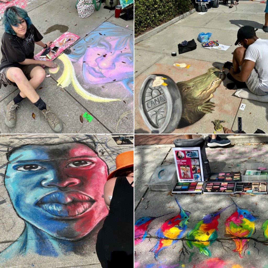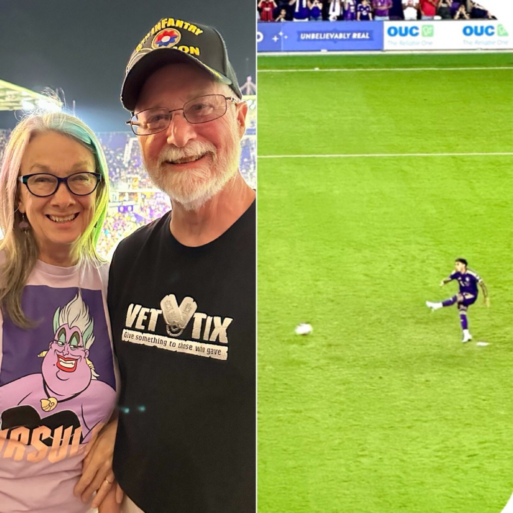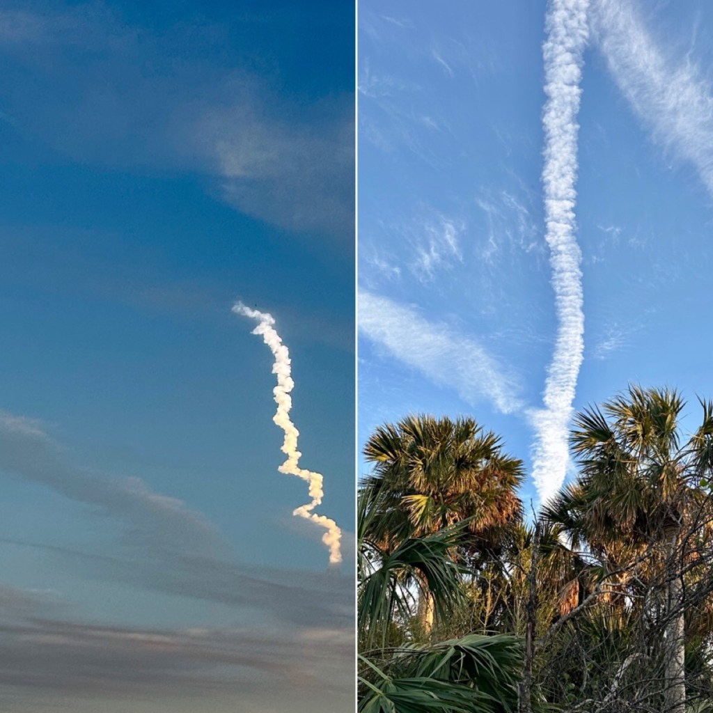 One of our favorite places on our winter adventure was the Smyrna Dunes Park. We walked the boardwalk every chance we could. We never knew what we might see. Especially fun as the birds migrated through on the Eastern Flyway. Last year in Oceanside California Denise was a hero to the gulls on the Oceanside Pier. In New Smyrna it didn’t take long for her to draw a crowd. Each morning I could I got my walking in as the sun peaked up. It was a two mile hike with a different view each morning. I met this man 48 years ago when he walked in the back door of Flanders Music saying he was applying for the job of TV repairman. He was an excellent technician and became a strong part of our business. Ralph had a fascinating life story and was a warm, gentle, kind soul. He made a difference in all our our lives. He is 90 now living in Okchoobee Florida. We had to spend time with him while we were in the Sunshine State. As the months progressed we began to see families arrive at NSB. Kids were on spring break and young sunrise fans started getting up early. I snapped this shot quickly when I saw this sun worshipper standing, watching. New Smyrna hosts a number of art shows and festivals in the spring. The Chalk/sidewalk show drew professionals and school students. Our favorite was the top left – a High School junior who did that self portrait. VetTix has provided tickets to Denise and I to all sorts of events. We were able to attend the opening match of the Orlando City Football Club. It was a noisy, exciting happening that evening in downtown Orlando. New Smyrna is one of the few beaches in Central East coast Florida that allows people to drive on the beach. They do patrol it and enforce no traffic zones. We were in Melbourne and our friend Ken, the oldest air traffic controller in the country and longest employee of NASA called me and said, “Gary, launch in 20 minutes, gotta go.” Driving back to NSB I caught these shots of the rocket. Since we were on ‘The Space Coast’ we took a turn and went back out on Merritt Island to a spot where Manatees tended to gather. As opposed to Blue Springs State Park, here you were closer to the ‘sea cows’. Always on the lookout for the unusual we saw this dedication plaque on a ‘portapotty’ at the Manatee stop. Zoom in on the ‘in memory’ plate,on the top. We do continue to search out local coffee toasters and shops. We came upon Credo in downtown Orlando. Walking in we knew this place was different. The cuppa joe was very good, but when the barista said, “here you pay what you think is right”. It is fair traded coffee from a single source known farmer and roasted locally. We were impressed. Dinner with old friends is always on our agenda. A quick stop at our dear sister and brother’s new home in New Smyrna gave Denise the opportunity to say hello to the Samano pets. In the next edition of our winter adventure we have an unbelievable and amazing ‘plot twist’.