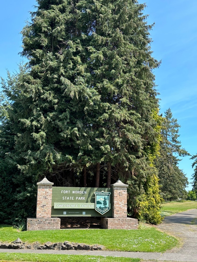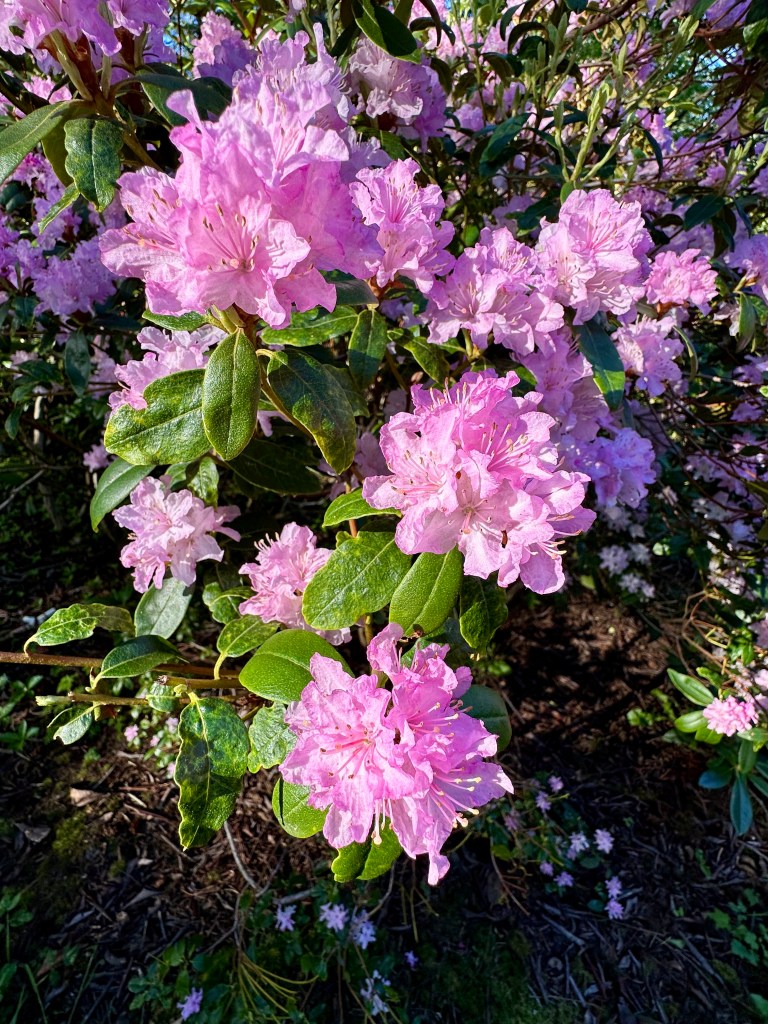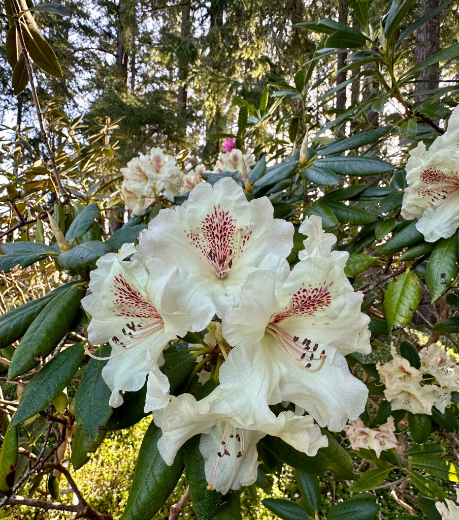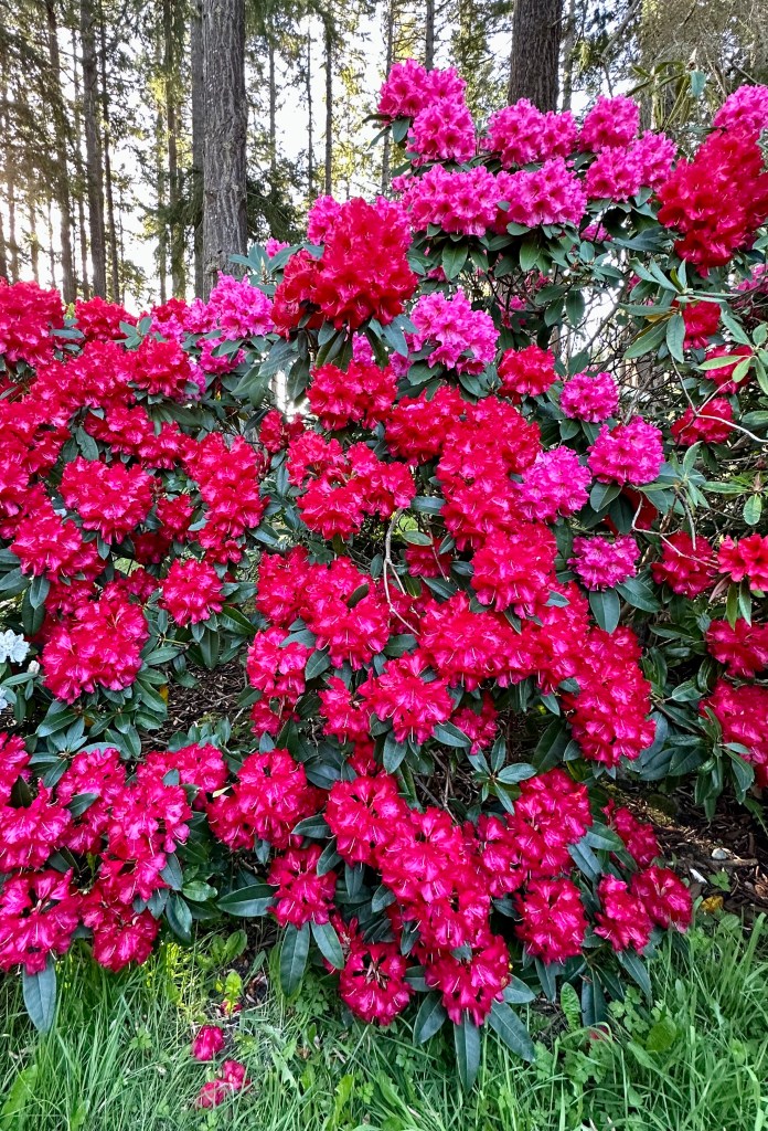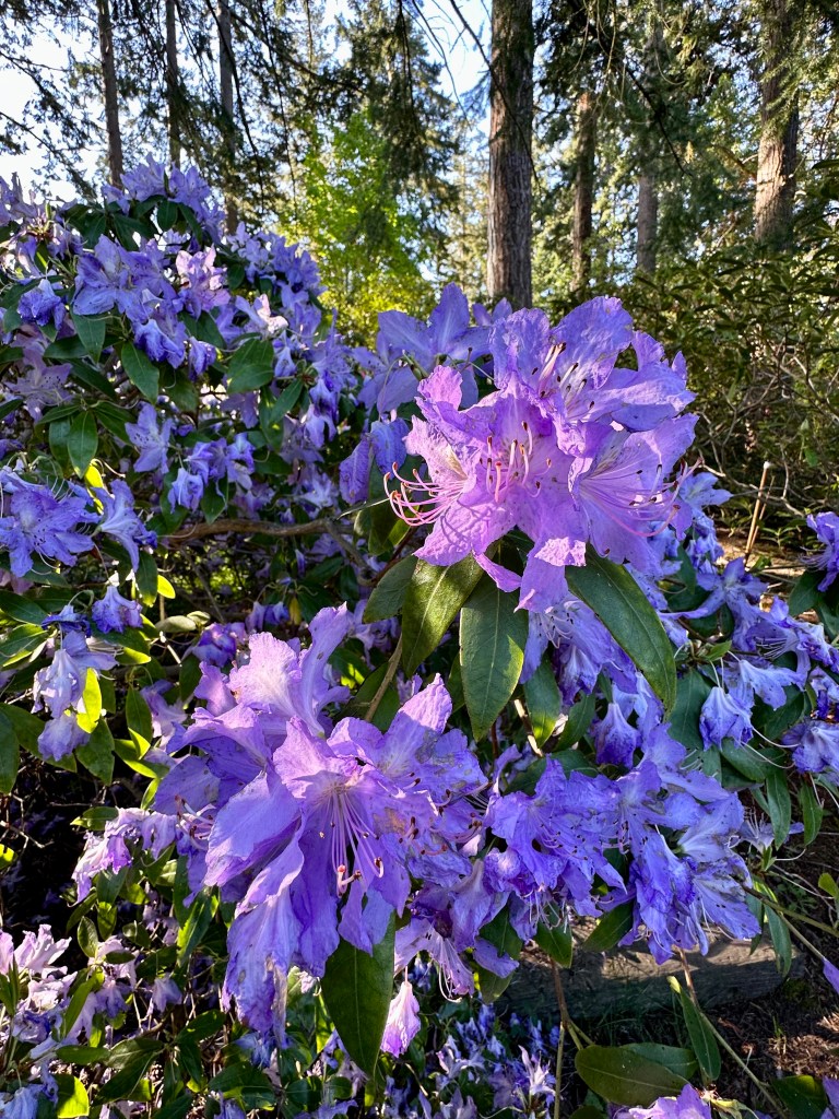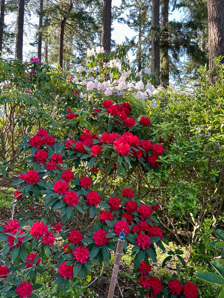 It is a good day when you can see Mt Baker from the state park on Port Townsend. The main entrance to a beautiful parkHidden by the entrance is the path to the Rhododendron Garden. It is Rhododendron time in western Washington. In this garden is every color and hue. More on the way.