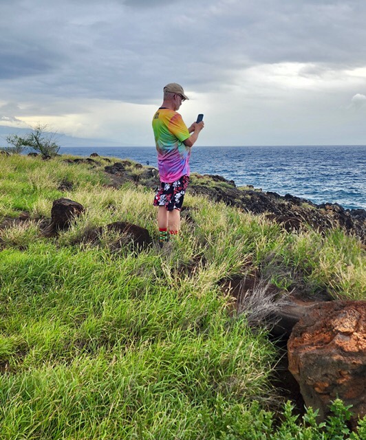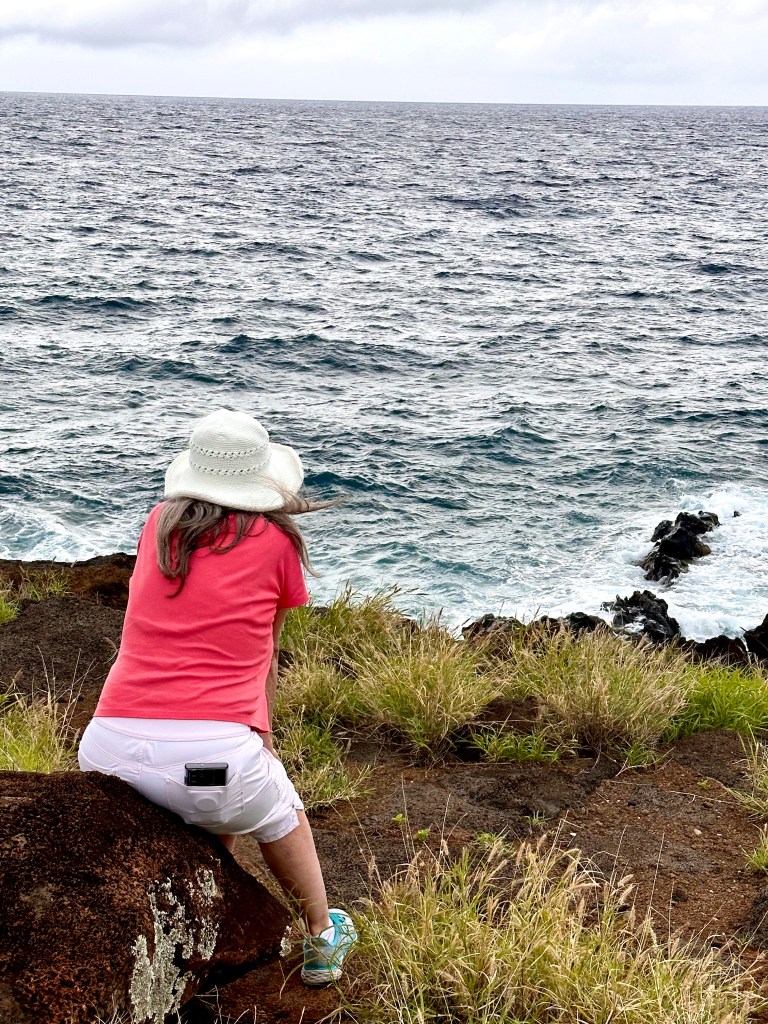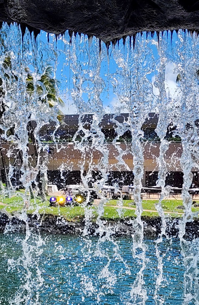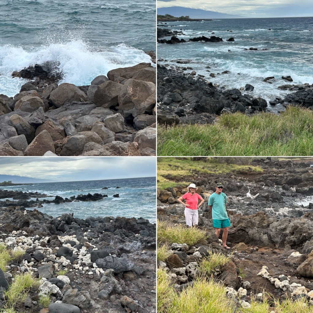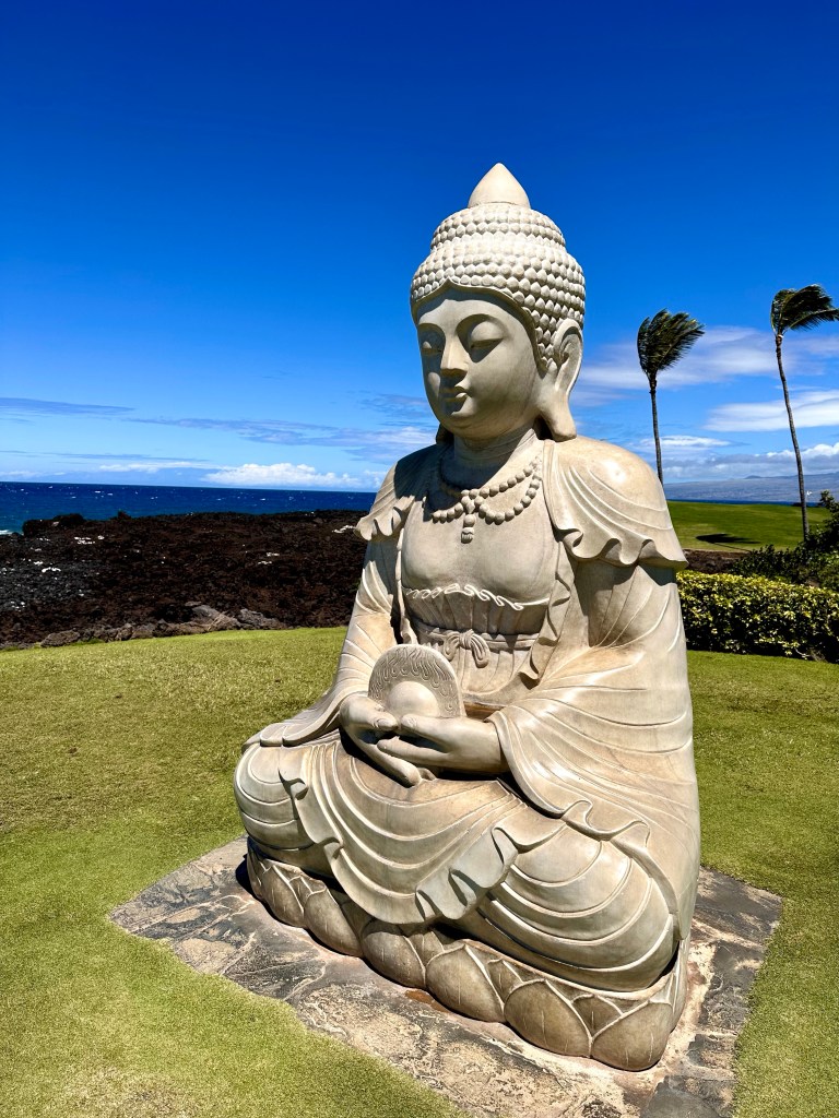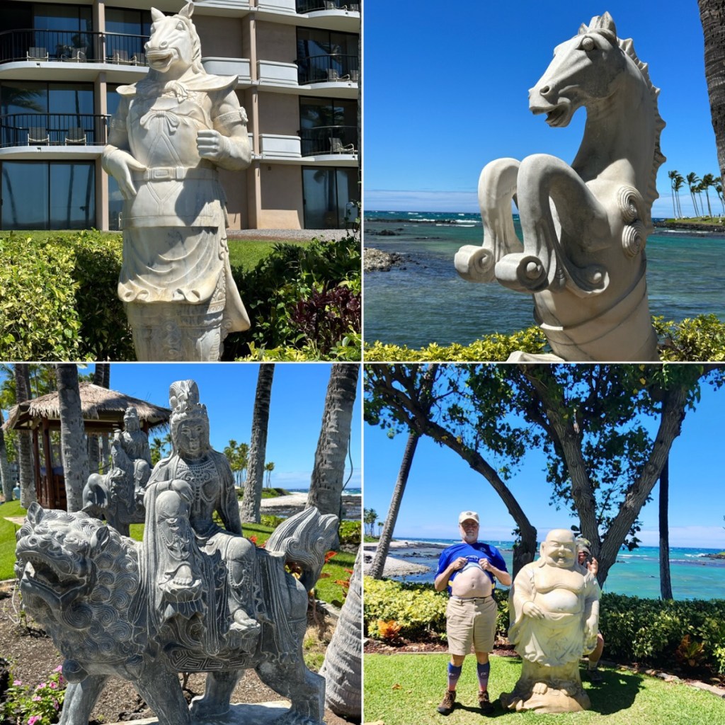 Standing by the Buddha statue in the Marriott resort we did see whale spouts and tails slapping the water.
