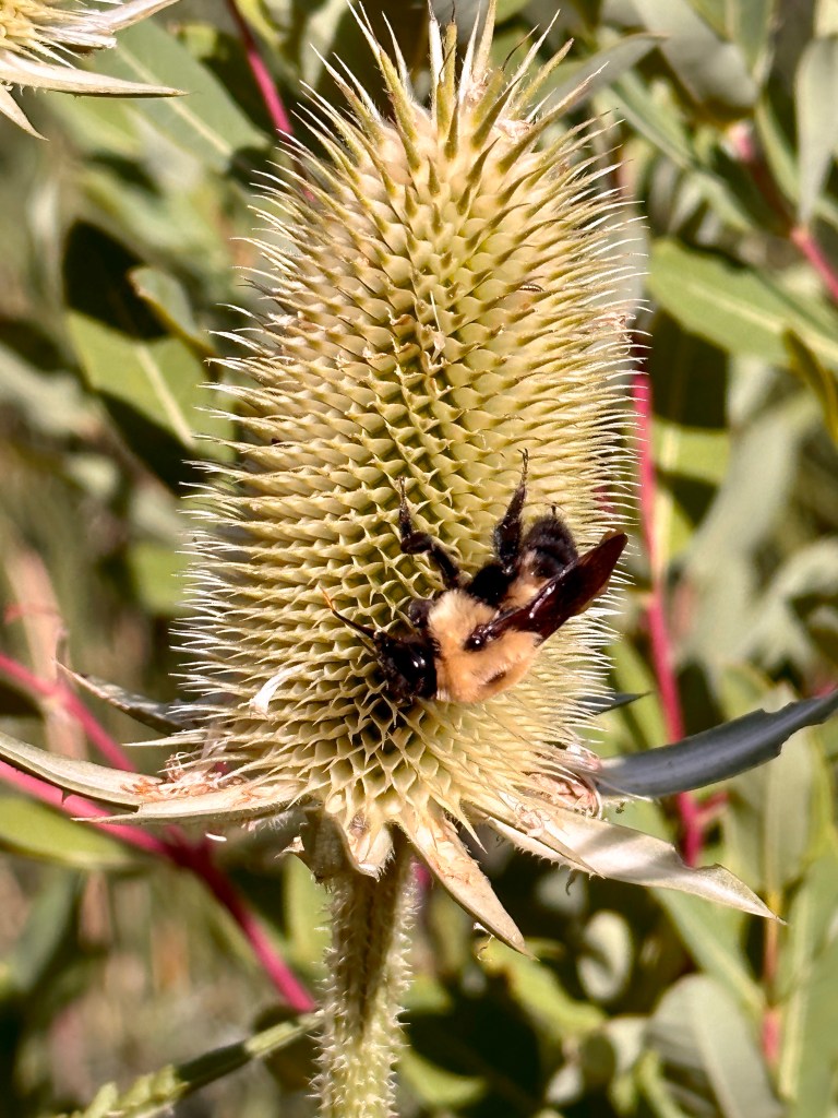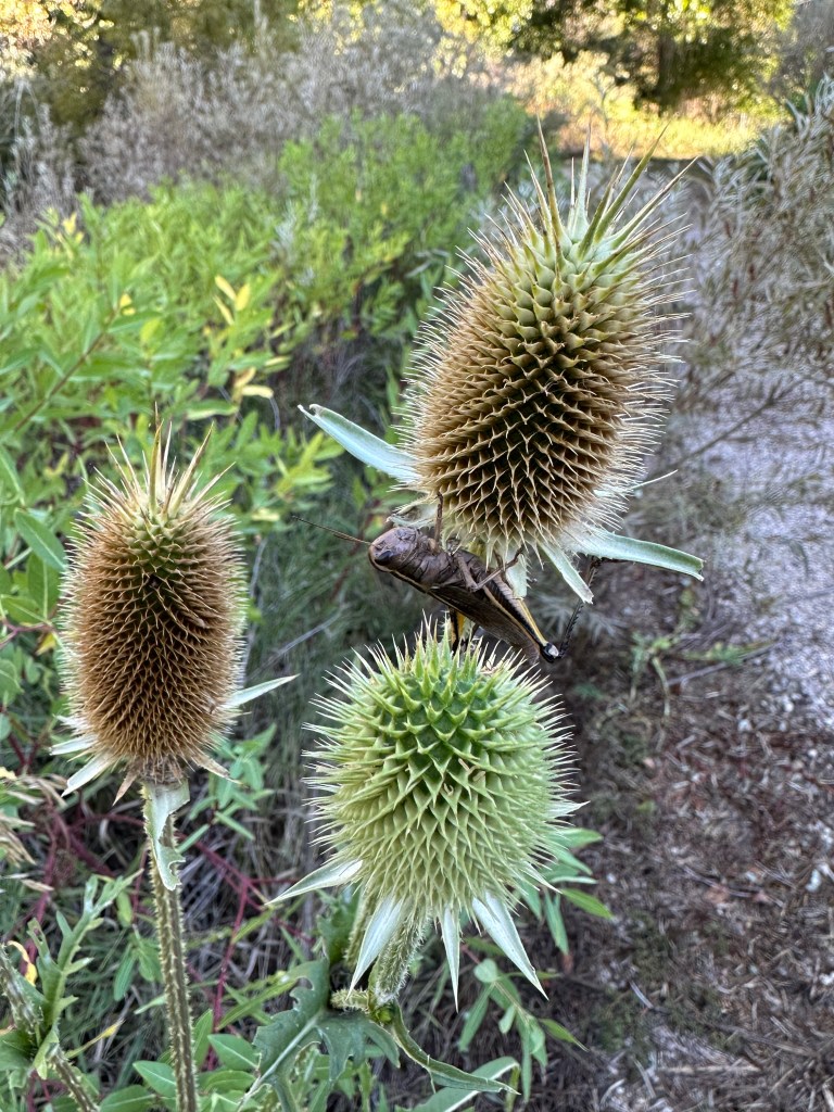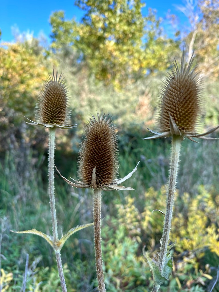 Thistles spike the summer air Or crackle open under a blue-black