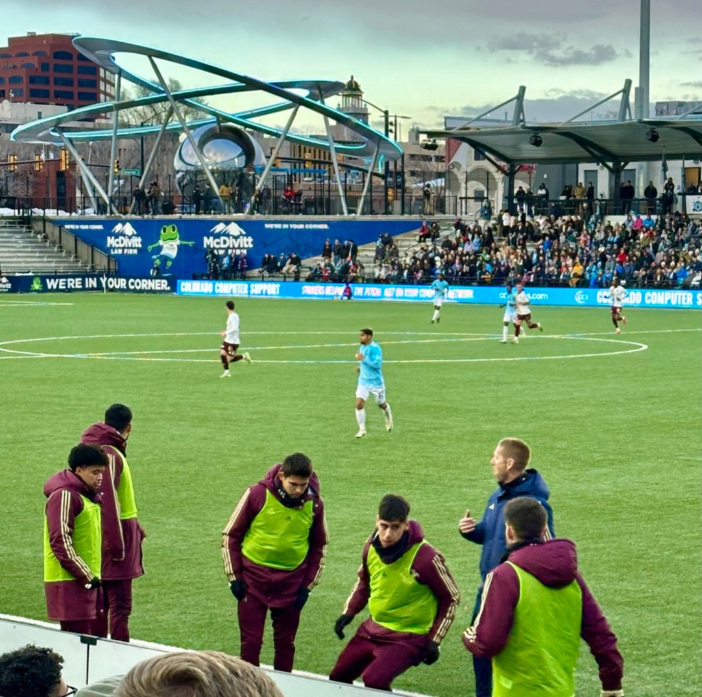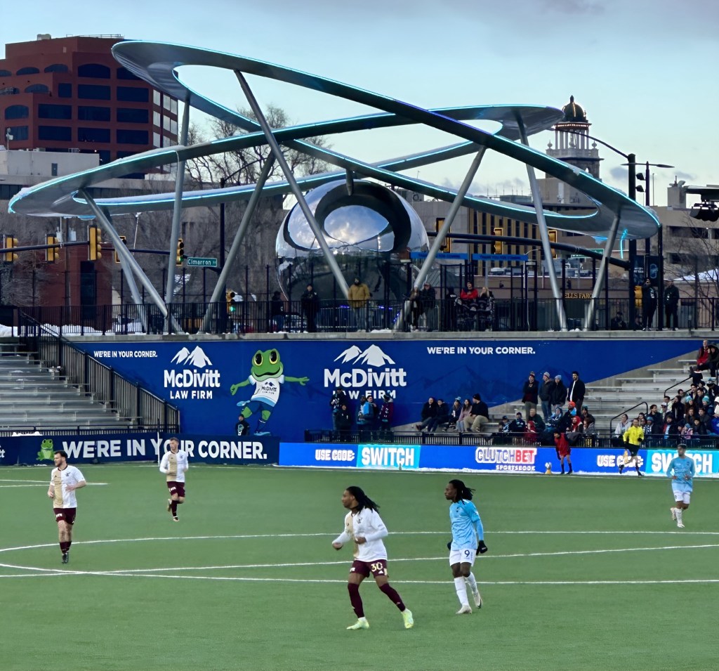 A grateful thank you to The Colorado Switchbacks Football Club for the opportunity to see our old hometown Detroit City Football Club at beautiful Weidner Field in Colorado Springs. When you first walk into the stadium you are met by a sculpture called “The Epicenter”. Commissioned by Dean Weidner, the stadium’s namesake, it is a sight to behold and grab a reflective shot. Weidner Field is the highest elevation professional soccer stadium in the United States at 6,000 feet.Weidner is home to the Colorado Switchbacks who play in the United Soccer League, the USL Championship, the second tier of US professional soccer. It was the 2024 home opener for the Switchbacks.