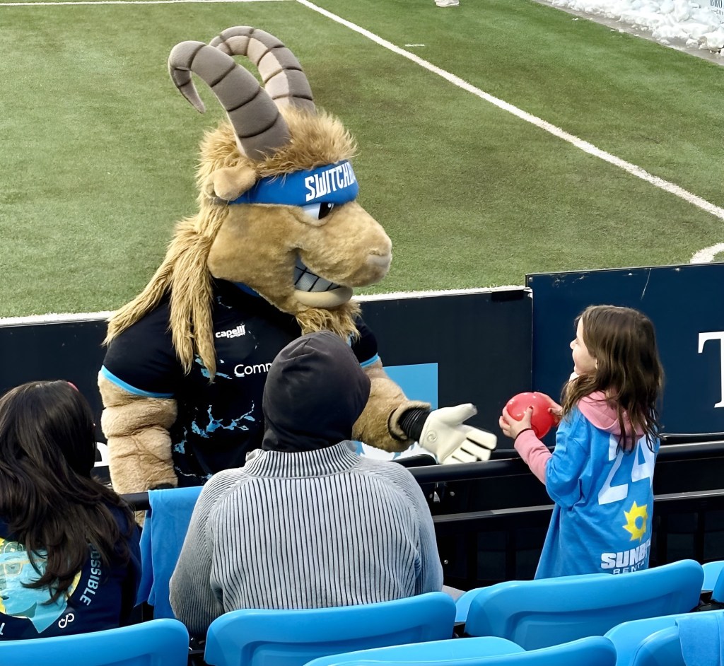 Despite being the only ones in the stands yelling the old chant: “DC…FC” we had a great time sitting with other Vets who received tickets through the VetTix organization. The Switchbacks’ mascot, playing with some kids.A Switchbacks goal tied it all at 1 -1.In the 90th minute, Detroit scored for a 2 -1 DCFC victory. Thanks again to The Colorado Switchbacks and VetTix for a wonderful evening.