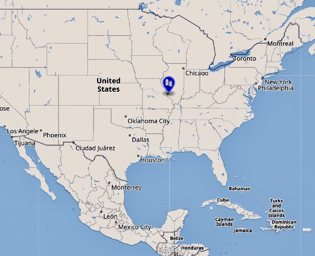 The city of St Louis, Missouri. It sits near the confluence of the Mississippi and the Missouri Rivers.