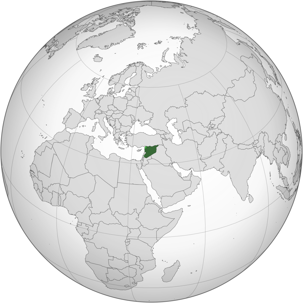 Syria, (لْجُمْهُورِيَّةُ ٱلْعَرَبِيَّةُ ٱلْسُوْرِيَّة – Arabic) officially the Syrian Arab Republic, is a country in West Asia located in the Eastern Mediterranean and the Levant. It is bounded by the Mediterranean Sea to the west, Turkey to the north, Iraq to the east and southeast, Jordan to the south, and Israel and Lebanon to the southwest. It is under a transitional government and comprises 14 governorates. Damascus is the capital and largest city. With a population of 25 million across an area of 185,180 square kilometres (71,500 sq mi), it is the 57th-most populous and 87th-largest country.