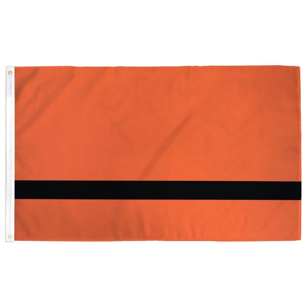The Syrian artist, Yara Said, a refugee himself who found asylum in Amsterdam, designed a flag to symbolize all refugees. He states: “Black and orange is a symbol of solidarity with all these brave souls that had to wear life-vests to cross the sea to look for safety in a new country. Since I had to wear one, I have a personal engagement with these vests and these two colors.”