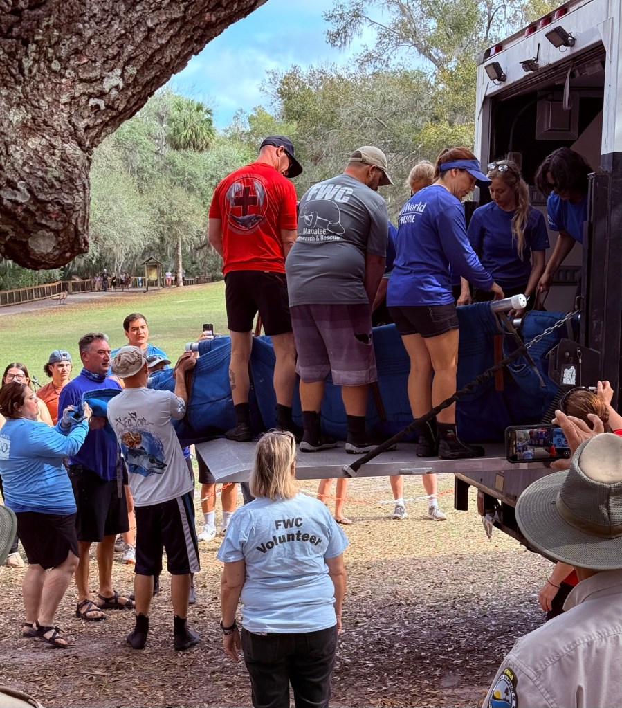 Sea World brought 3 Manatees, the 4th came from Zoo Tampa. In this truck is Calliope, a bit of a ‘hefty’ young lady weighing in at 1,100 pounds.