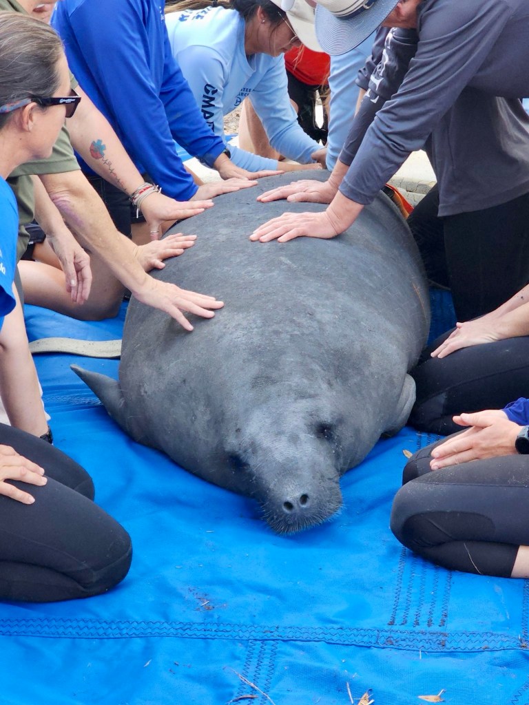 A Manatee must weigh a minimum of 700 pounds before they are released back into the water.