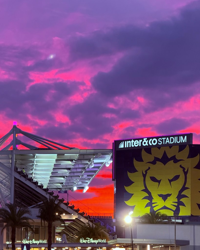 A beautiful sunset met us as we approached Inter & Co Stadium.