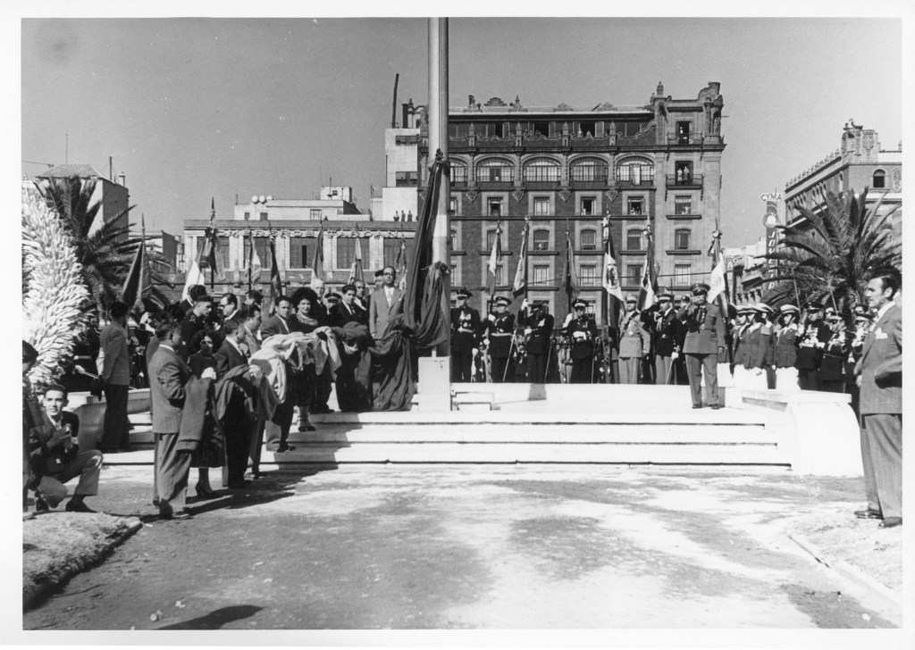 “The date was selected because more than a century earlier (February 25, 1821), the “Plan de Iguala” or “Plan de las tres garantías” was proclaimed by Agustin de Iturbide and General Vicente Guerrero. This plan was based in three principles: “Religion, Independence and Unity”, which were represented on the flag’s colors. On this same date, Jose Magdaleno Ocampo tailored the first three color flag for what would soon be an independent Mexico. This flag, commonly known as the “Pendón Trigarante”, had the colors: white, green and red in that order, arranged diagonally with three eight-point gold stars, one on the center of each color banner.”