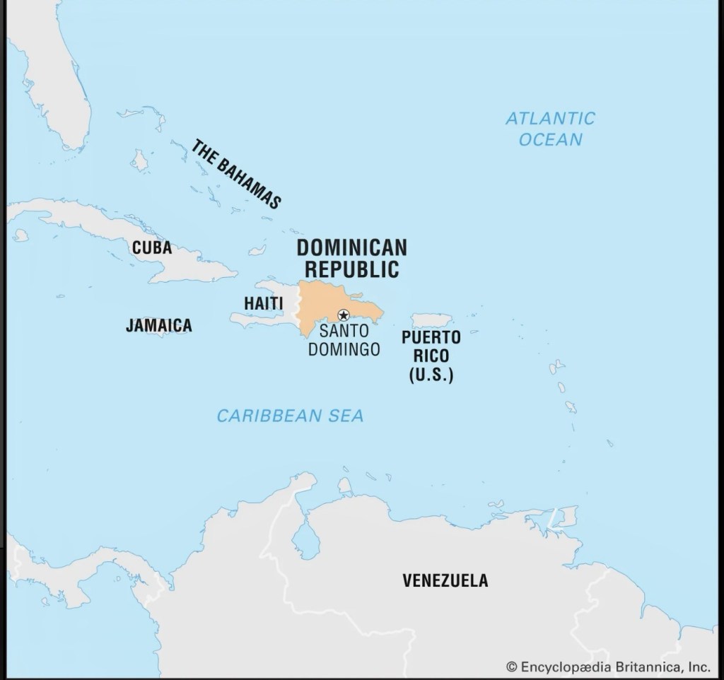 The Dominican Republic is a North American country located on the island of Hispaniola in the Greater Antilles of the Caribbean Sea in the North Atlantic Ocean. It shares a maritime border with Puerto Rico to the east and a land border with Haitito the west, occupying the eastern five-eighths of Hispaniola which, along with Saint Martin, is one of only two islands in the Caribbean shared by two sovereign states. In the Antilles, the country is the second-largest nation by area after Cuba at 48,671 square kilometers (18,792 sq mi) and second-largest by population after Haiti with approximately 11.4 million people in 2024, of whom 3.6 million reside in the metropolitan area of Santo Domingo, the capital city.