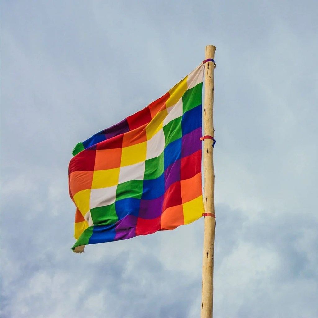 “La bandera del Tahuantinsuyo es un símbolo ancestral que representa la diversidad cultural y la identidad de los pueblos originarios de los Andes. Con sus vibrantes colores y complejo diseño cuadriculado, la wiphala es una expresión visual de la rica historia y cosmovisión de las civilizaciones precolombinas de la región.”
