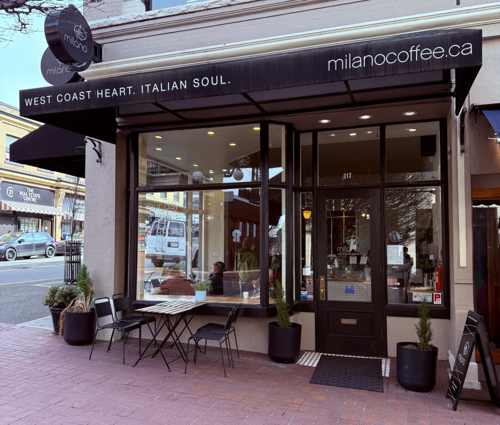 Walking Government Street towards the Royal British Columbia Museum we spy Milano Coffeehouse.