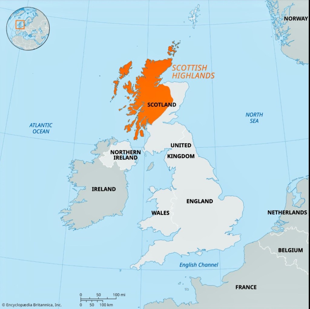 “Sutherland (Scottish Gaelic: Cataibh) is a historic county, [Originally called a shire, they were ways to organize Scotland and they were ruled over by a person called the Sheriff] registration county [In Great Britain and Ireland it was a statistical entity used to keep track of births and deaths] lieutenancy area [Used for areas that had a ceremonial Lord, who was appointed by the monarch] in the Highlands of Scotland. The name dates from the Viking era when the area was ruled by the Jarl of Orkney [Also known as The Earl of Orkney, this was a title of nobility which was formalized in 1195] although Sutherland includes some of the northernmost land on the island of Great Britain, it was called Suðrland (“southern land”) from the standpoint of Orkney and Caithness.”