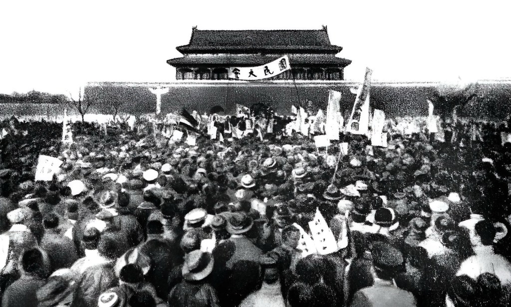 “The May Fourth Movementwas a Chinese cultural and anti-imperialist political movement which grew out of student protests in Beijing on May 4, 1919. Students gathered in front of Tiananmento protest the Chinese government‘s weak response to the Treaty of Versaillesdecision to allow the Empire of Japan to retain territories in Shandong that had been surrendered by the German Empire after the Siege of Tsingtao in 1914. The demonstrations sparked nationwide protests and spurred an upsurge in Chinese nationalism, a shift towards political mobilization, away from cultural activities, and a move towards a populist base, away from traditional intellectual and political elites”