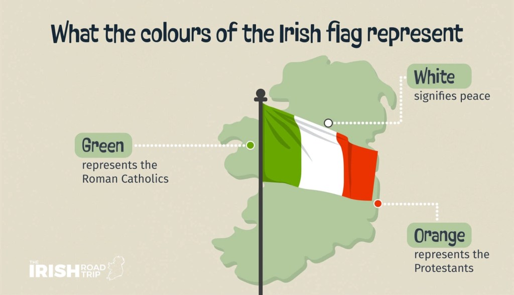 Before the Irish flag we know today, the Irish flag was a green flag with a harp on it. This older flag was first flown by Irish rebel leader Owen Roe O’Neill in 1642. The harp is known as the ‘Brian Boru Harp’ and is found in the Long Room Library at Trinity College in Dublin.