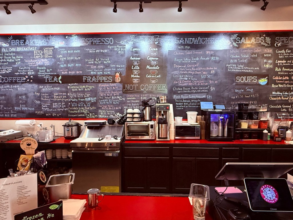 In need of a refreshing cuppa joe we searched and found Mattie’s Coffee Company. A good rating and a nice neighborhood vibe so we decided to test it out.
