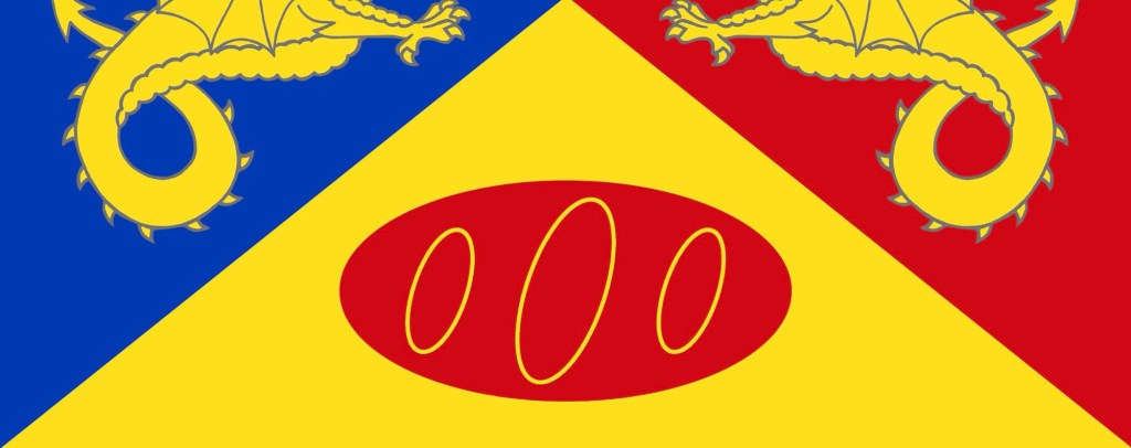 The flag of a small rural village in Wales. This is an example of a small town that has its own significant flag. It holds up my theory that UK and most of Europe knows how to design a flag. {Take note US cities}