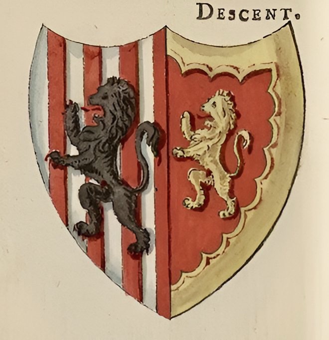 On either side are two golden wyverns couchant facing each other as in battle.