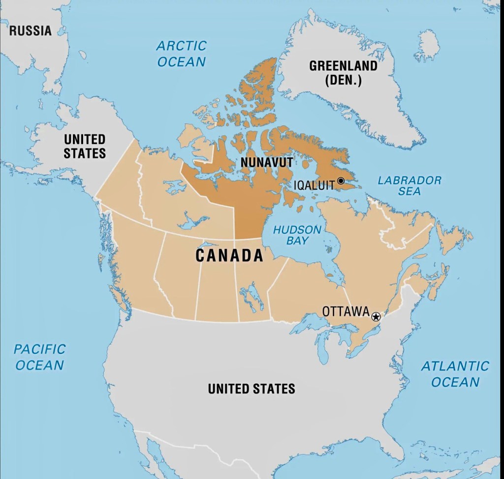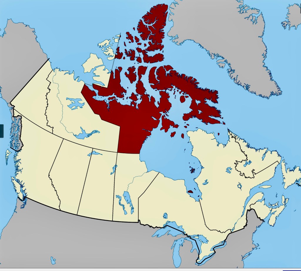 Nunavut includes Ellesmere Island and Cornwallis Islands. (Way up at the ‘tippy top’ of the map)