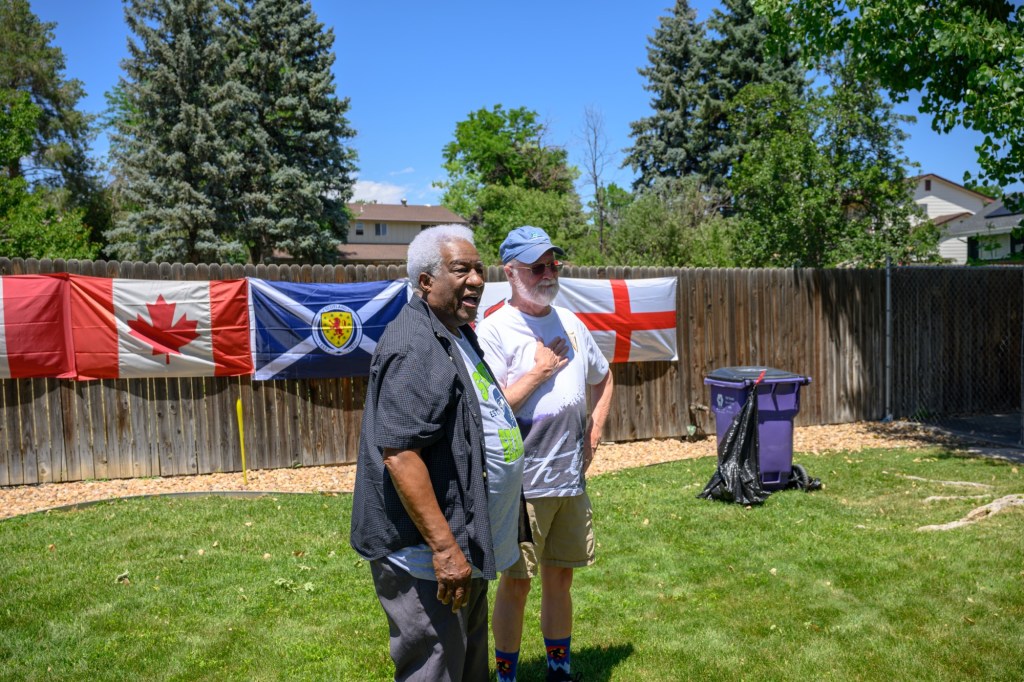 …’Wait, you said this was a barbecue…’‘…Hey, what are they doing here…and is that…I haven’t seen her in years…nothing is computing…’‘Nice flags…hey, those are my flags…’Boyhowdy, someone put in a lot of work on this extravaganza Boyhowdy, this is for me…Let the hugs commenceTwenty one year friendsI didn’t know you are friends with GaryThe main mechanic of the show. “Somebody said this is where the party is”‘Oh shit, I must be dead…there’s no way Major Boyd would be here!’Exactly 51 years ago David N Boyd was my commanding officer in the Army. After working full time for 50 years he was,the best boss I ever had. ‘Where is that young lady who I have been talking to about this party?’Major Boyd, meet Adelina. Party on.Time for photos with the birthday boyI was there when they had their first date. Over two decades later we are still close.Add in the famous Dr. ElliotOur travel buddy, JohnHooray, Michael was there with his friend AmberOur Denver family, our life is so much better being part of the Mena/Aguilar la familiaArmy buddiesMajor Boyd always loved DeniseYumm…gluten freeTry the group shot again.Once more…