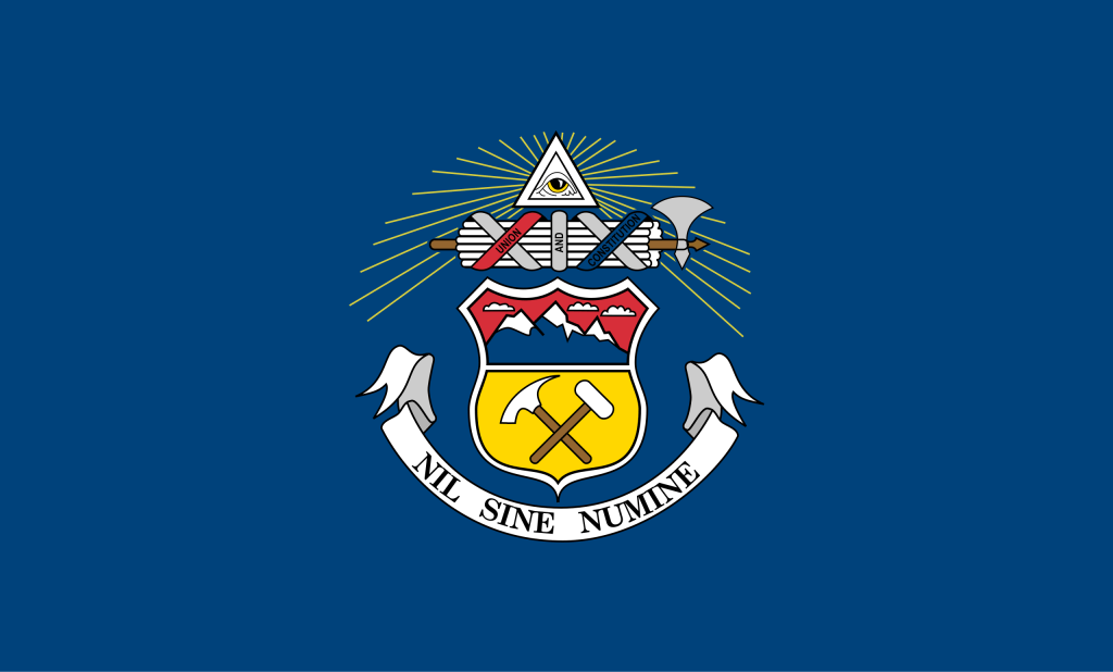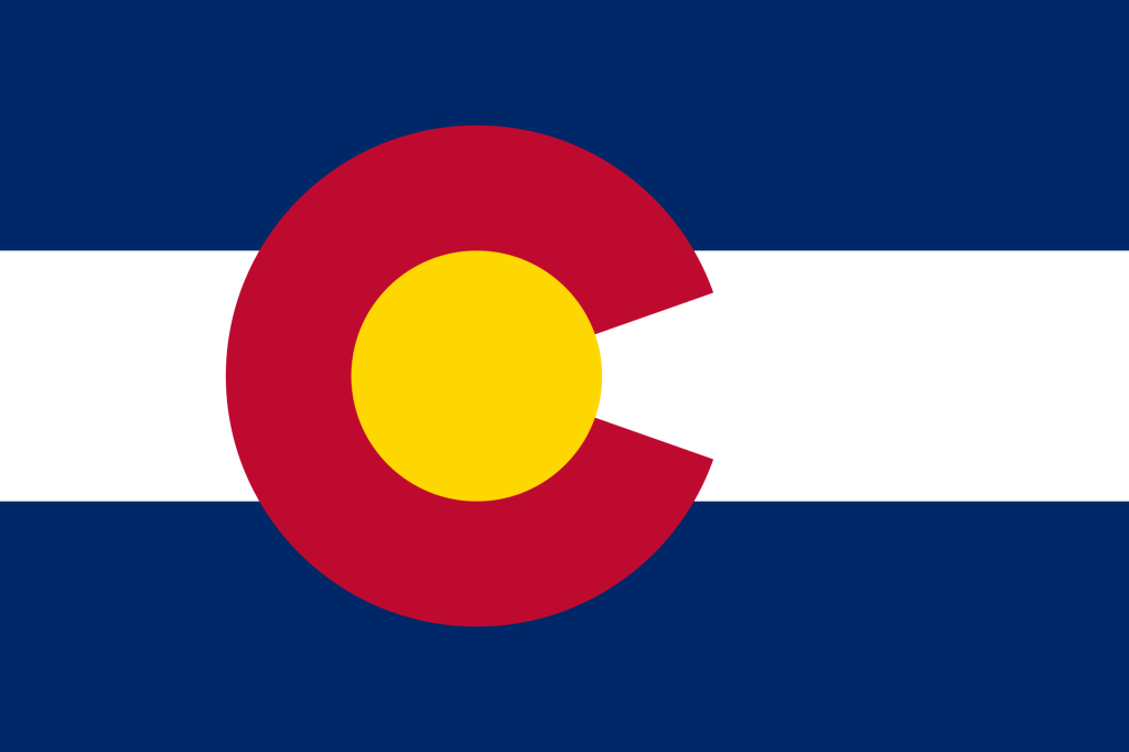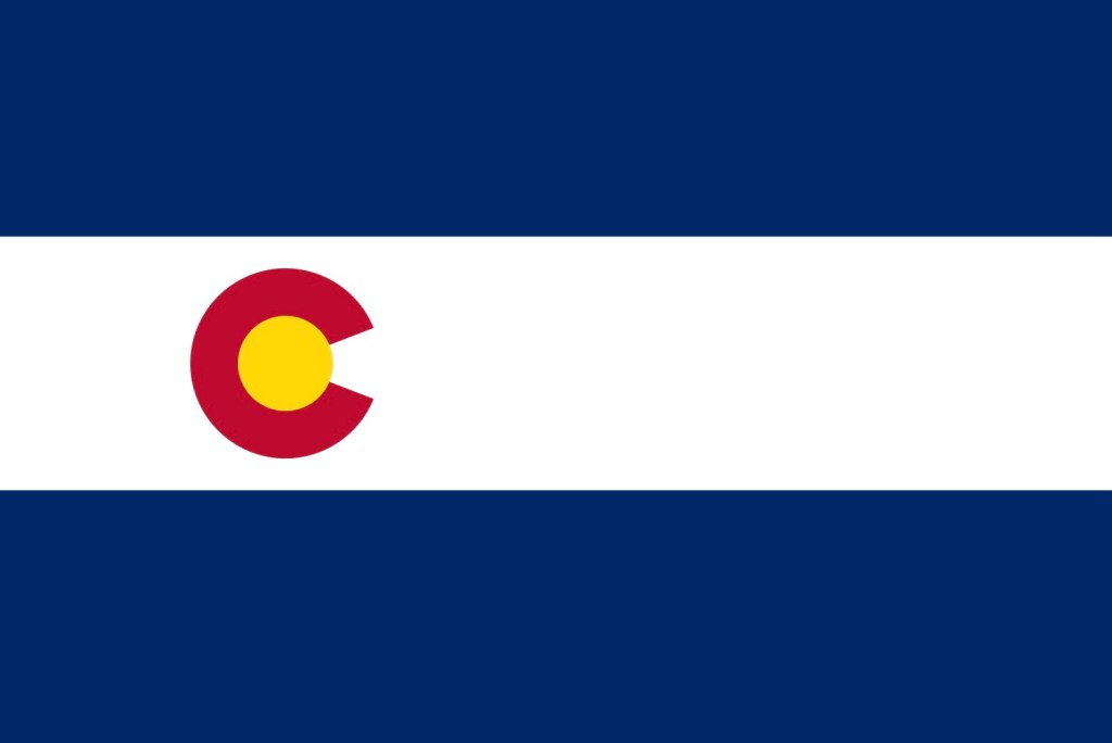 The flag is a bicolor horizontal triband composed of blue (the blue skies), white (the snow capped mountains) and a red (the ruddy earth) C. The red ‘C’ is filled with gold (the sunshine). It was adopted in 1911 . There were a couple of variations before the present flag was redesigned in 1964. NAVA ranks it number 16 of all of the US flags.