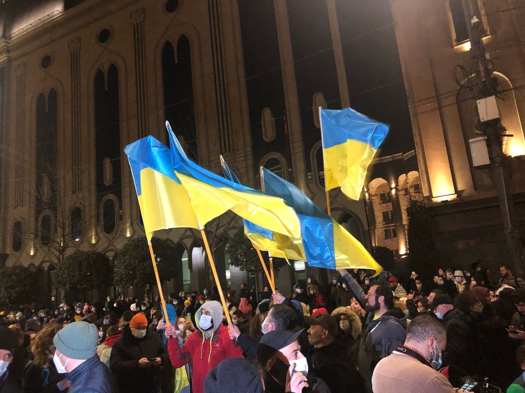 During the Russian invasion of Ukraine in 2022, Georgia provided diplomatic and humanitarian support for Ukraine but did not join other countries in imposing sanctions on Russia. Since the beginning of the war Georgia has topped the list of countries to which Russian exiles moved. Russians, just like many foreigners, were allowed to stay in Georgia for one year without a visa, though many Georgians began to view the presence of more Russian citizens in Georgia as a security risk. Shortly after the outbreak of the war, Georgia applied for membership of the EU at the same time as Ukraine and Moldova. While the latter two received the candidate status a few months later, Georgia was given preconditions to receive the candidate status, which predominantly focused on judicial reforms, rule of law, de-oligarchization and addressing the highly polarized political and media climate. To join the EU and NATO would significantly distance itself from Russia.