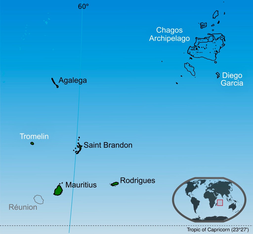 “Mauritius also claims sovereignty over the Chagos Archipelago(including Diego Garcia), some 1,250 miles (2,000 km) to the northeast, although this claim is disputed by Britain. A tentative agreement to resolve the competing claims was announced in October 2024.”