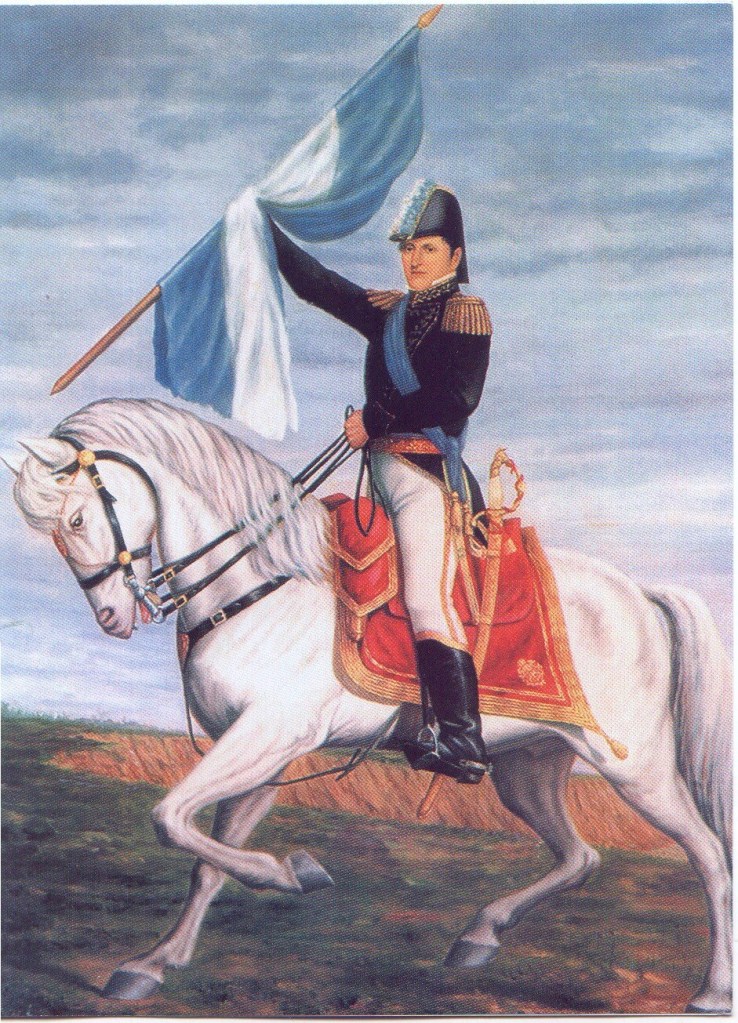 Cockades as worn by patriots in Argentina in May 1810, when the Spanish viceroy in Buenos Aires yielded authority to the local government, and the uniforms worn by Argentines in 1806, when the British attacked Buenos Aires, may have been the origin of the celeste-white-celeste horizontally striped flag first hoisted on Feb. 12, 1812, by Gen. Manuel Belgrano. On July 9, 1816, Argentina, then part of the United Provinces of the Río de la Plata, proclaimed its independence from Spain. However, it was not until Feb. 25, 1818, that the golden “Sun of May” was added to the centre of the flag in reference to the events of May 1810, when the sun supposedly shone through the clouds.