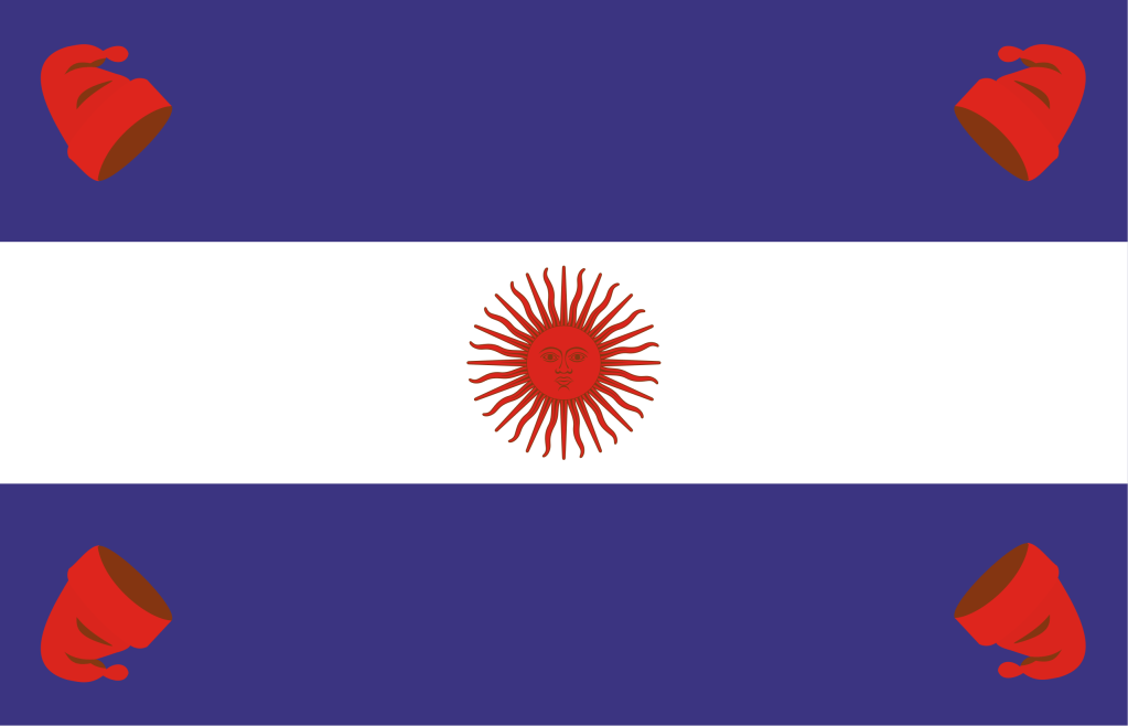 The flag is a simple, well designed ‘good flag.’ It is three equal horizontal bands of blue and white. There is debate over the significance over the colors. It first appeared in 1812 as a battle flag during the Argentine war of Independence.
