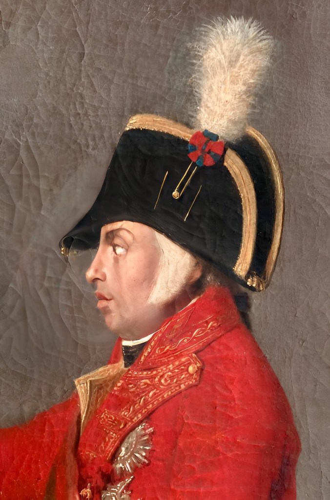 John VI of Portugal wearing the blue-and-red cockade of Portugal on a military cocked hat