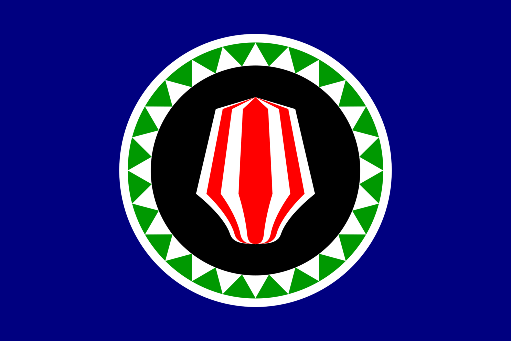 “According to the Bougainville Flag, Emblem and Anthem (Protection) Act 2018, the flag consists of “a depiction of an upe superimposed over concentric discs of black and white on a cobalt blue field”. The upe is a traditional headdress worn by Bougainvillean men as a symbol of adulthood. The black disc “represents the distinctive skin colour of the Bougainvillean people”, while the white disc represents the kapkap, a traditional symbol of authority made from mother of pearl. The 24 green equilateral triangles within the kapkap symbolise “the importance of land to the Bougainvillean people”, the blue field represents the ocean.”