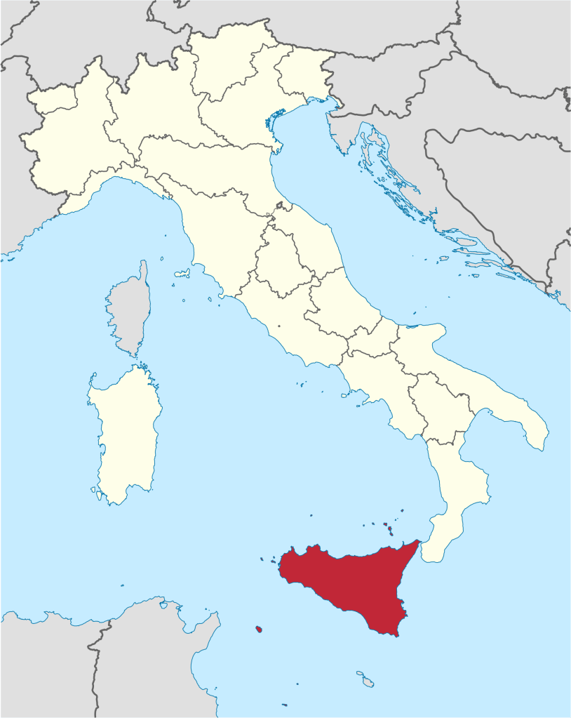 Sicily, Italy. The largest island in the Mediterranean Sea just to the south of the Italian Peninsula, separated by the narrow Strait of Messina. It is home to the tallest active volcano in Europe, one of the most active in the World. There has been human activity on the island recorded as early as 12,000 BC.