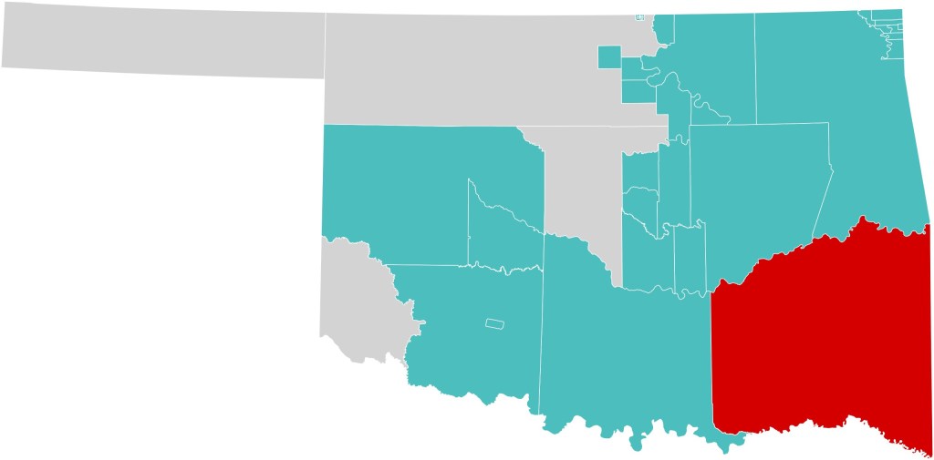 Officially a domestic dependent nation since 1971, in July 2020, the Supreme Court ruled in McGirt v. Oklahoma that the eastern area of Oklahoma- about half of the modern state- never lost its status as a Native reservation. This includes the city of Tulsa (located between Muscogee and Cherokee territory). The area includes lands of the Chickasaw, Choctaw, Cherokee, Muscogee and Seminole. Among other effects, the decision potentially overturns convictions of over a thousand cases in the area involving tribe members convicted under state laws. The ruling is based on an 1832 treaty, which the court ruled was still in force, adding that “Because Congress has not said otherwise, we hold the government to its word.” As such, the Choctaw Nation returned from a domestic dependent nation status to that of an Indian reservation.