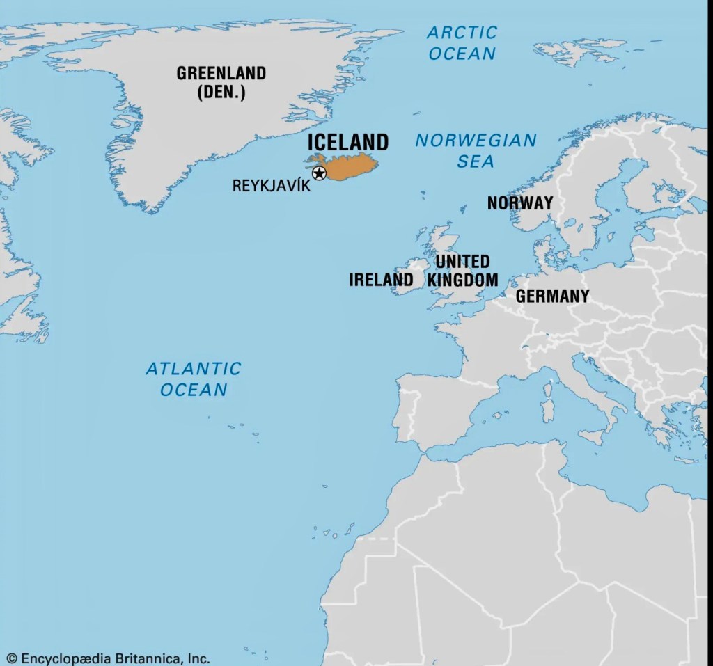 Iceland, island country located in the North Atlantic Ocean. Lying on the constantly active geologic border between North America and Europe, Iceland is a land of vivid contrasts of climate, geography, and culture. Sparkling glaciers, such as Vatna Glacier (Vatnajökull), Europe’s largest, lie across its ruggedly beautiful mountain ranges; abundant hot geysers provide heat for many of the country’s homes and buildings and allow for hothouse agriculture year-round; and the offshore Gulf Stream provides a surprisingly mild climate for what is one of the northernmost inhabited places on the planet.