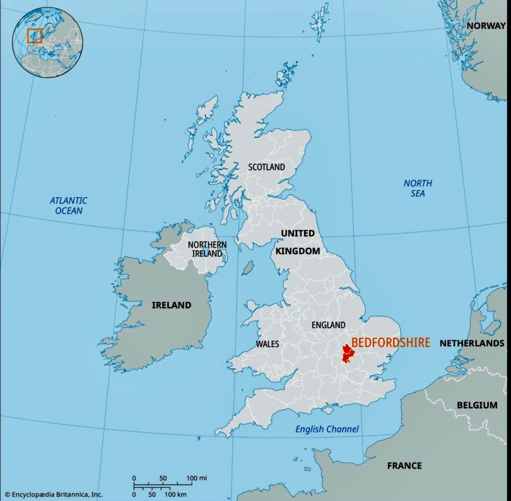 The first recorded use of the name in 1011 was “Bedanfordscir“, meaning the shire or county of Bedford, which itself means “Beda’s ford” (river crossing).