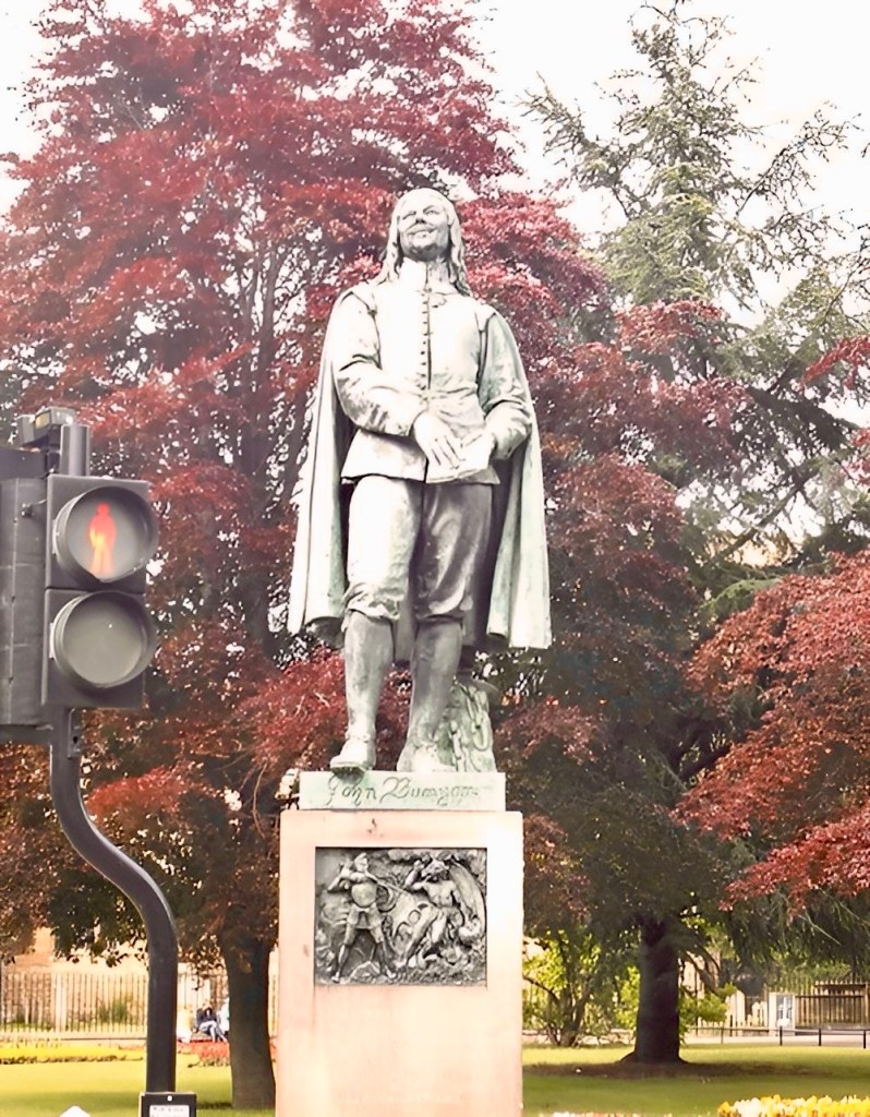 Bunyan came from the village of Elstow, near Bedford. He had some schooling and, at the age of sixteen, joined the Parliamentary Army at Newport Pagnell during the first stageof the English Civil War. After three years in the army, he returned to Elstow and took up the trade of tinker, which he had learned from his father. He became interested in religion after his marriage, attending first the parish church and then joining the Bedford Meeting, a nonconformist group in St John’s church in Bedford, and later became a preacher. After the restoration of the monarchy in 1660, when the freedom of nonconformists was curtailed, Bunyan was arrested and spent the next twelve years in prison because he refused to give up preaching. During this time, he wrote a spiritual autobiography, Grace Abounding to the Chief of Sinners, and began work on his most famous book, The Pilgrim’s Progress.