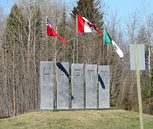 The green represents the summer months, while the white represents the winter months. The trillium is the floral symbol of Ontario, while the fleur-de-lys represents the French Canadian heritage of the Franco-Ontarian community.