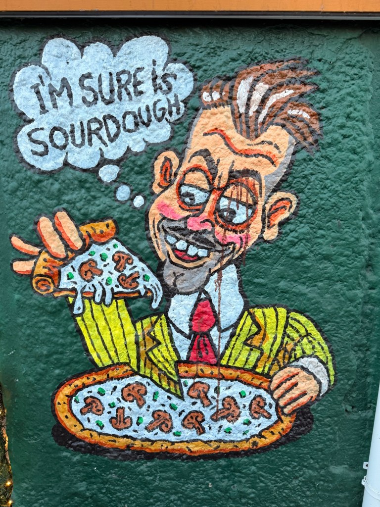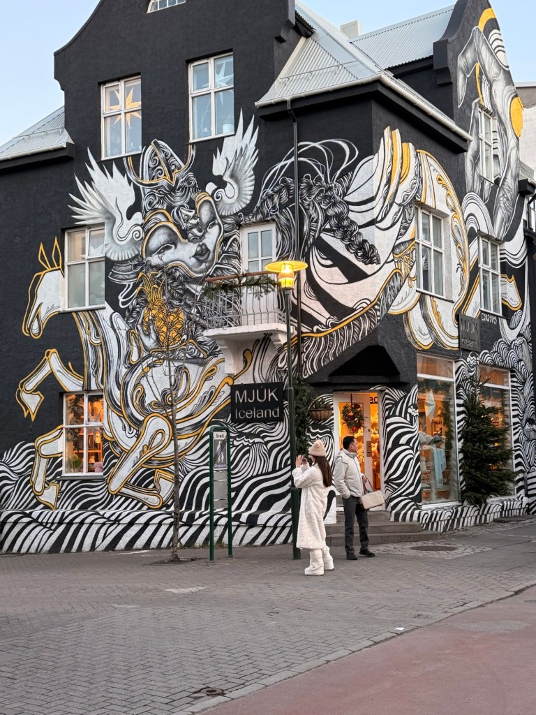 A structure outside the Harpa Building. It was constructed exactly like the Vikings did in the 900s. A store in downtown Reykjavík. The famous Dracula mural. Business mural. Good dinner of fish & Chips. Time to head out to a night time activity – the results tomorrow.